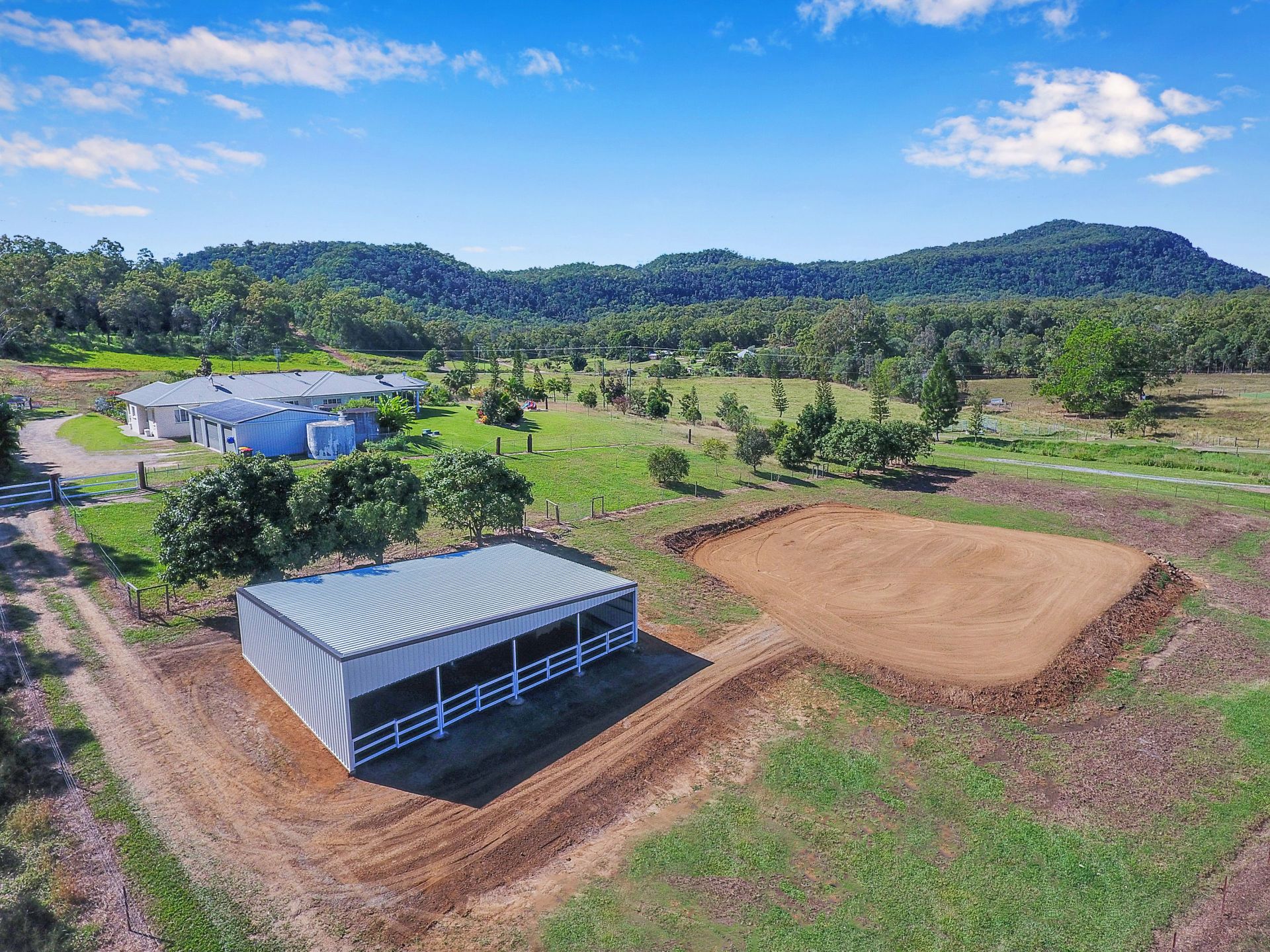 12 x 7.5m 3 bay shed with 2 x electric rollerdoors. Undercover access from house to shed.