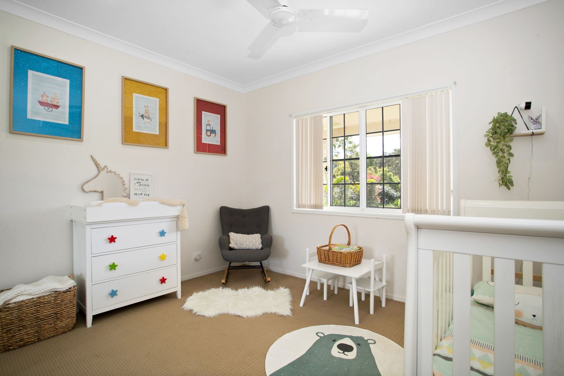 Built-in wardrobes, fan and reverse cycle split systems in each room. Carpet in bedrooms.