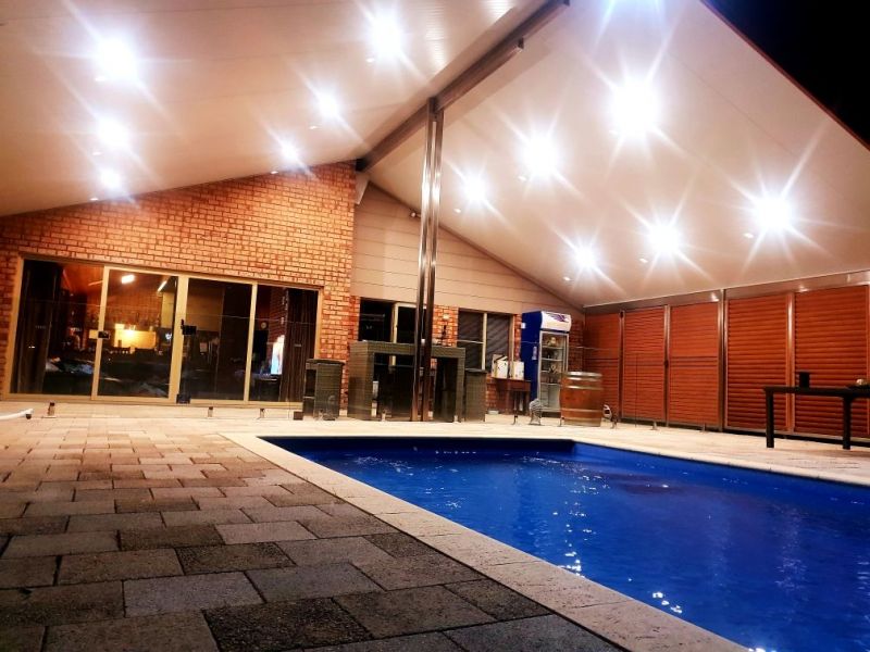 - Outside is where the real fun starts with a TOWERING pitched alfresco overlooking the STUNNING 11x4 metre SALT pool. - Surrounded by 50 metres of FRAME LESS glass fencing, Mum's view of the surrounding natural landscape is unobstructed, leaving her connected with NATURE.