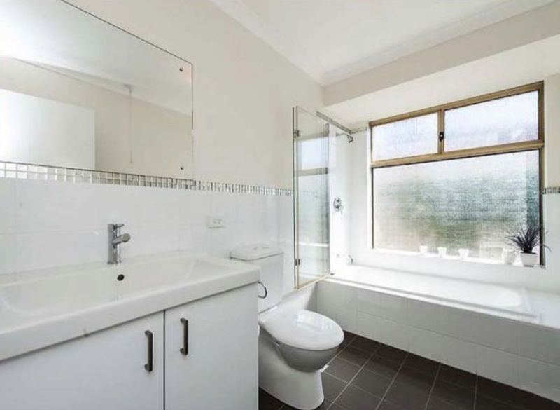 Main bathroom is modern and white.