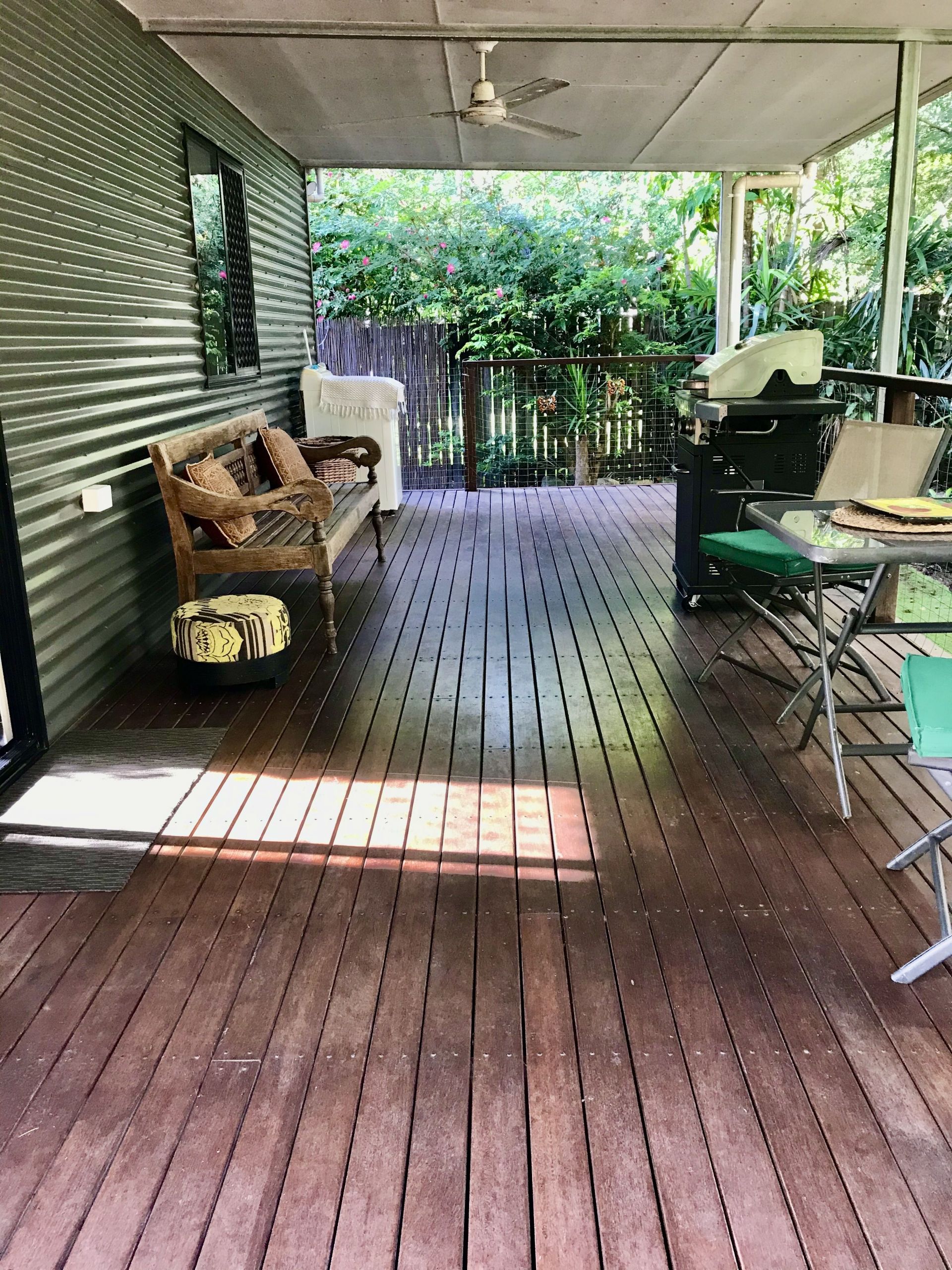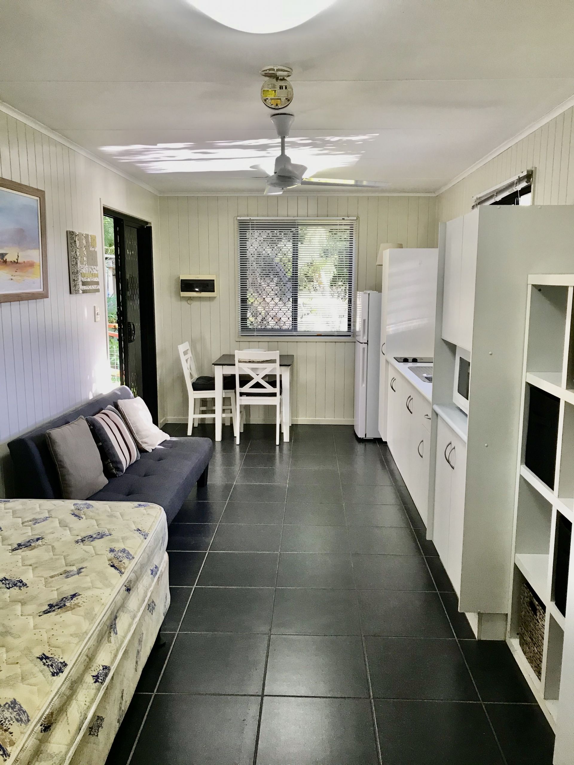 There is a Self contained studio cabin with a large undercover deck at the rear of the property very private with tropical gardens, fully furnished and was recently earning $280 per week rented.