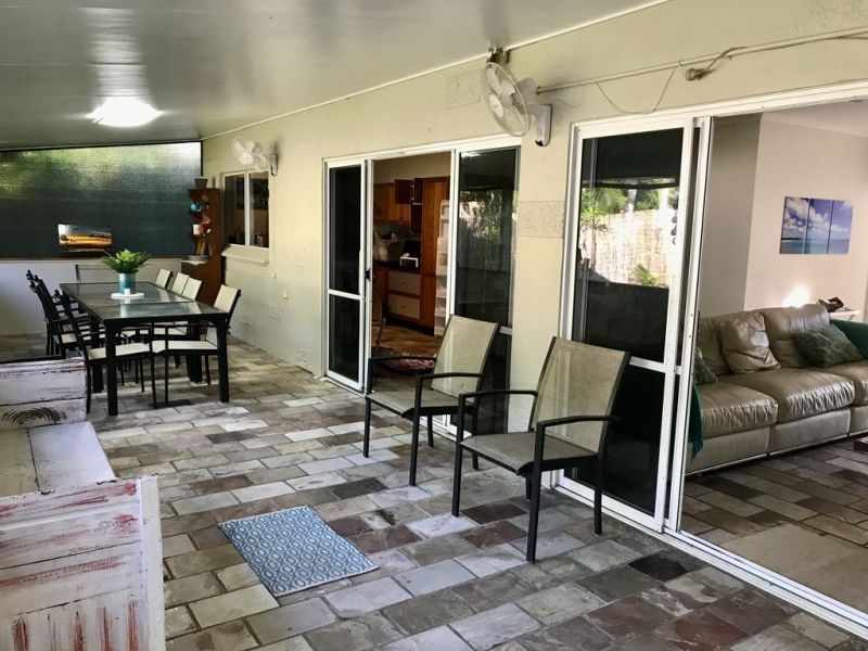This is a spacious and bright home with open style lounge / dining / kitchen leading to a huge screened and air conditioned undercover outdoor living area which opens out to the pool, lush green yard and tropical gardens.