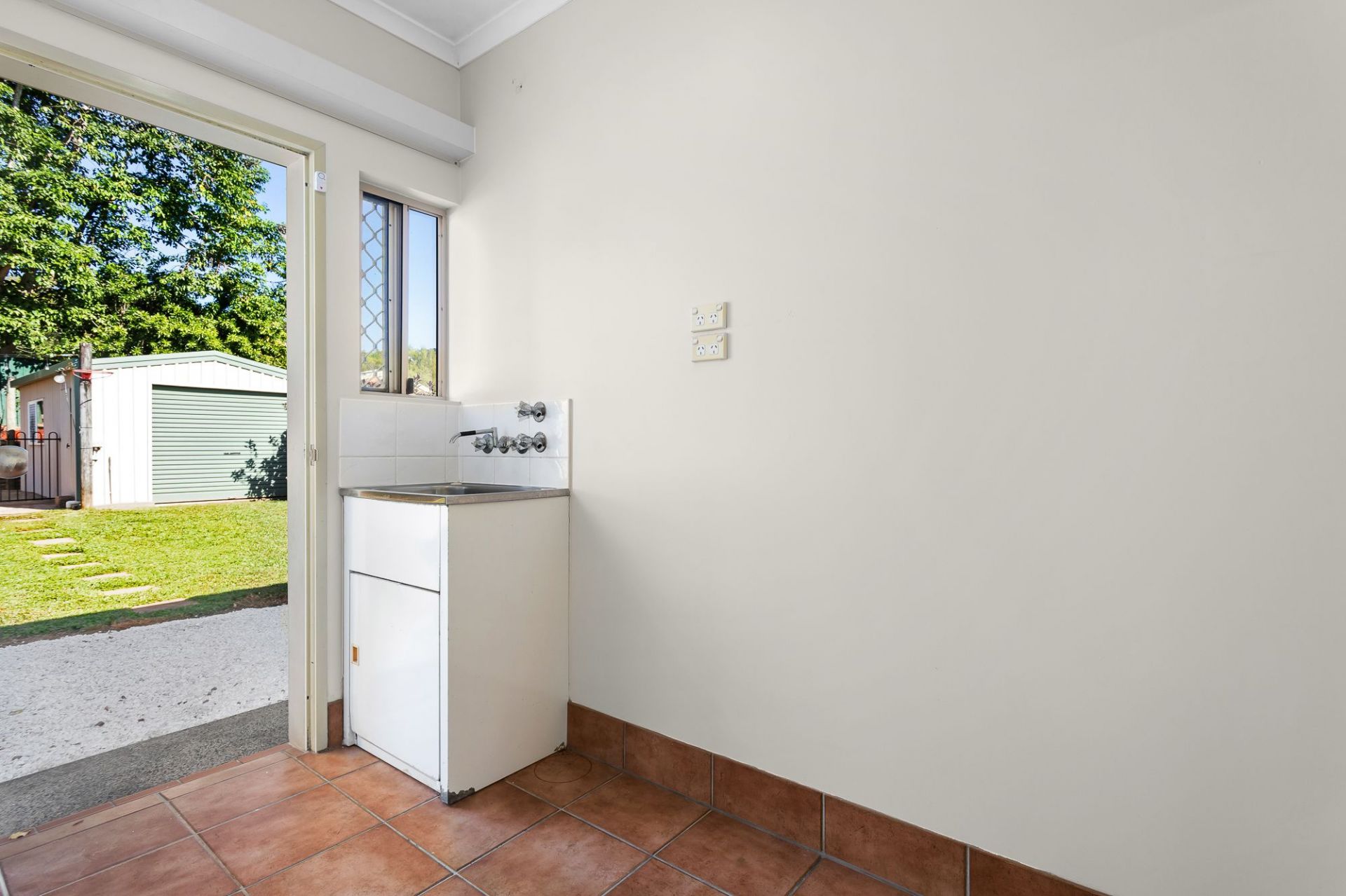 Additional walk in garden shed, great for mowers and pool toys.