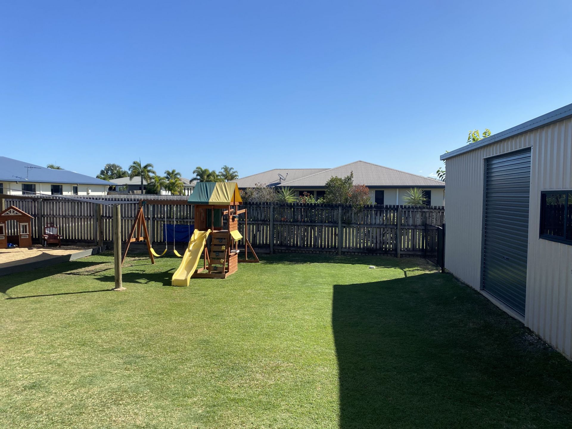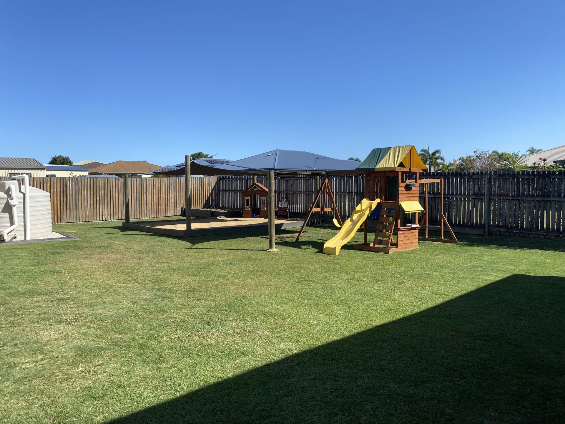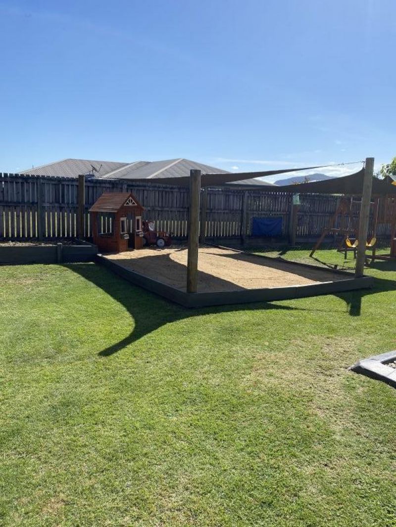 The huge backyard offers are large entertainment area that overlooks a fantastic space for everyone especially the kids with a A large 6X4 sandpit that will keep the kids entertained for hours.