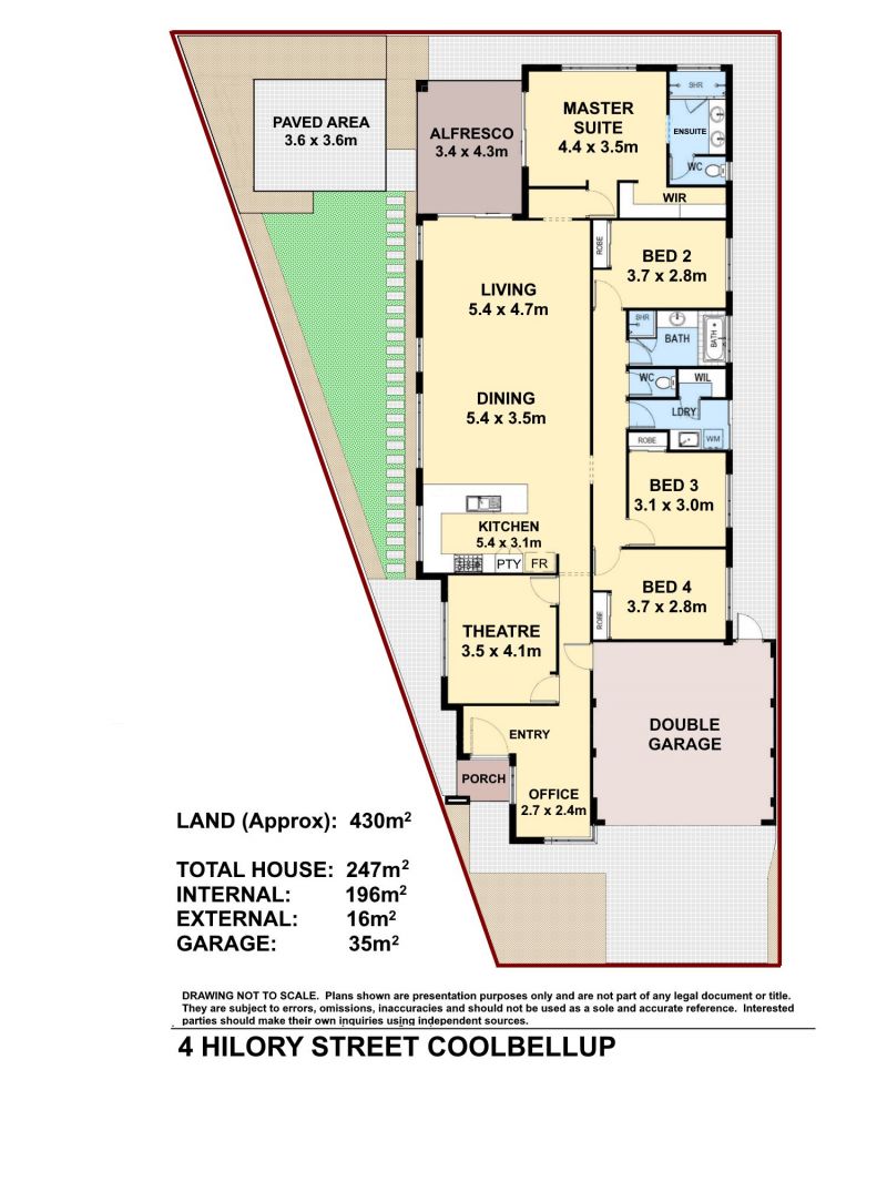 Welcome to 4 Hilory Street - A modern, spacious 4 bedroom, 2 bathroom family home that has the features you are looking for. Set on a 430m2 green titled block in the highly desirable 'The Primary' Estate in Coolbellup, you will be only minutes away from local shops, Murdoch University, Fiona Stanley and within easy access to Fremantle. The 247m2 home built in 2014 boasts a modern style and spacious open plan living that will absolutely impress.