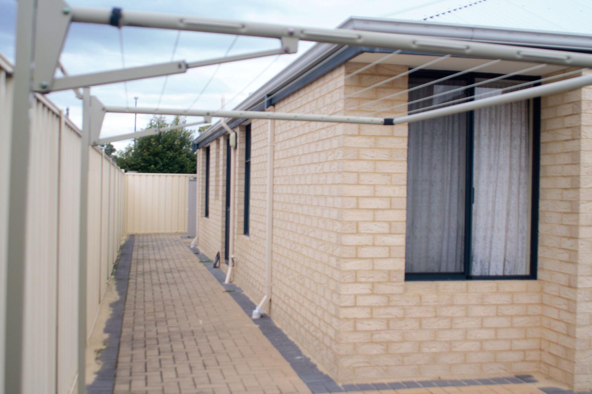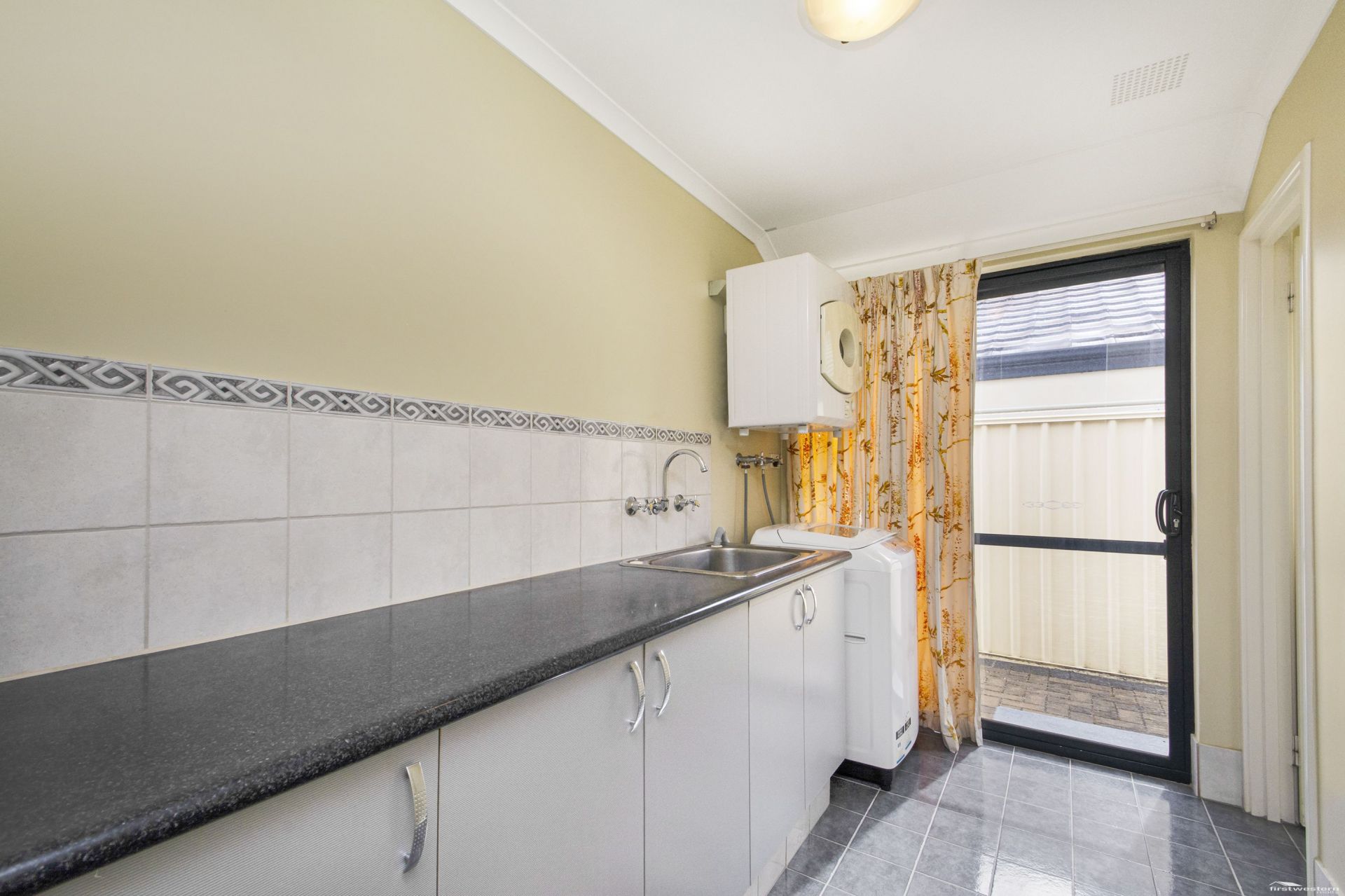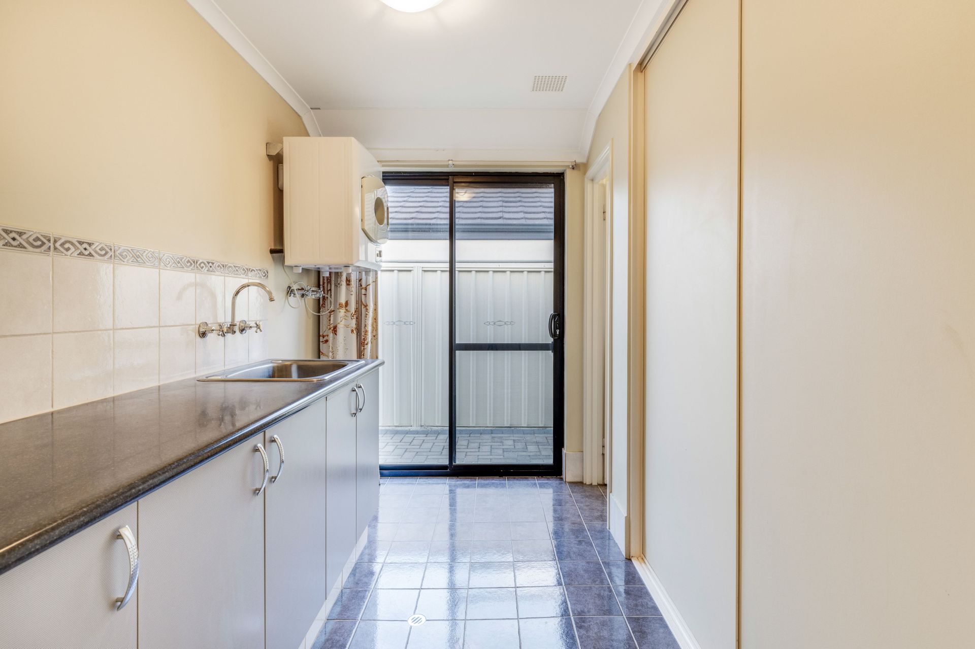 - Functional Laundry is tiled with a sliding glass door access thru to the side brick paved area to the outdoor clothesline.