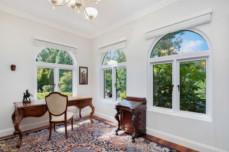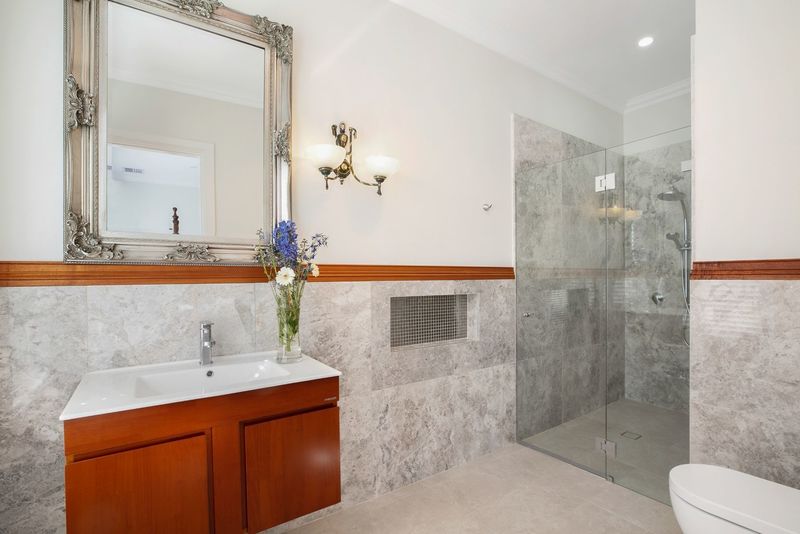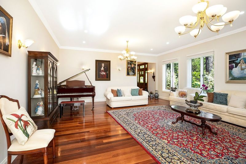 The house offers 2 impressive entry foyers with leadlight Australian cedar doors and wonderful garden views from every room. It has an easy flowing collection of sophisticated formal and informal spaces characterized by high quality finishes, with double-glazed windows and French doors, hardwood flooring, 3m high ceilings, Carrara marble fireplace, dual ducted heating and cooling system with advanced climate control.