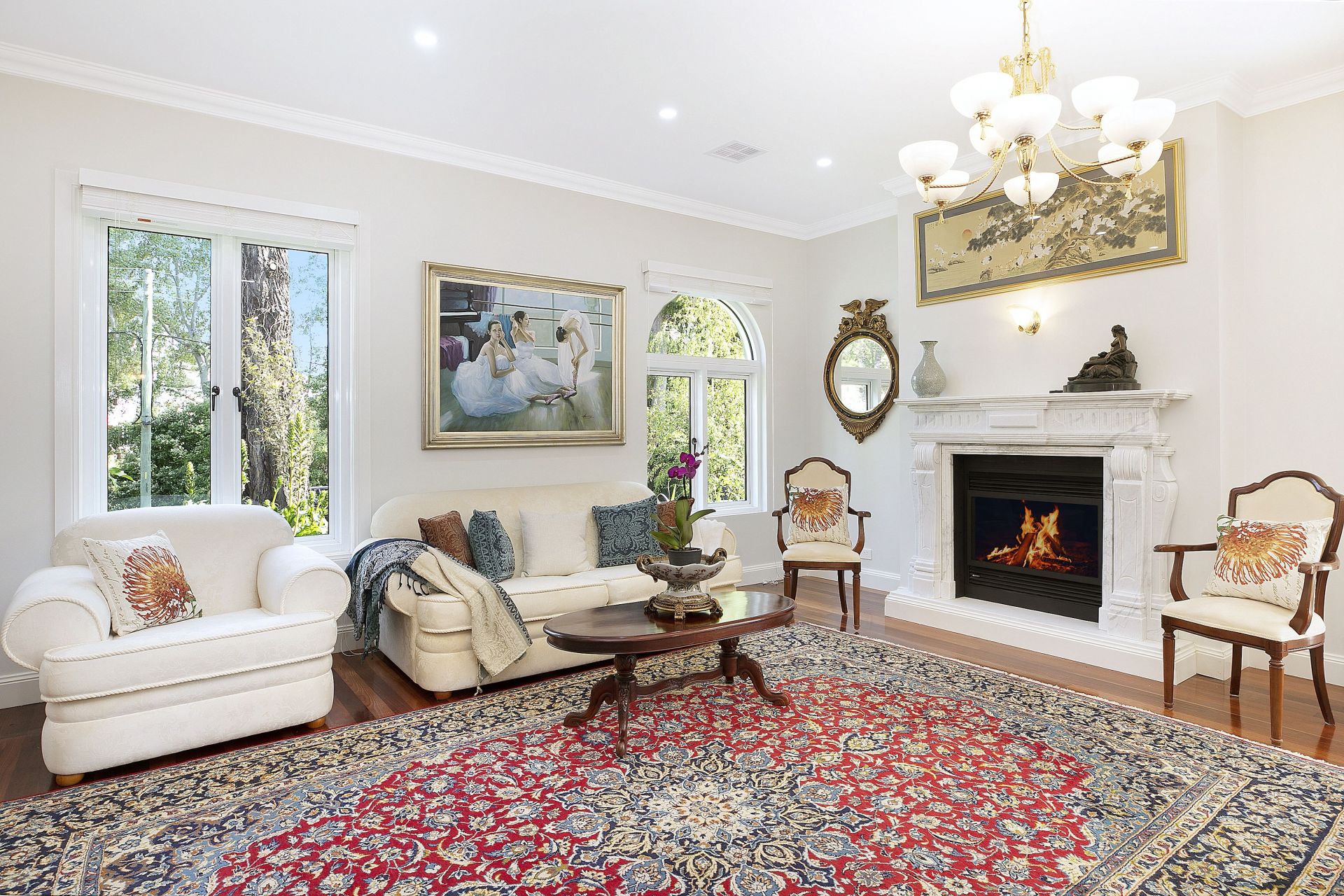 - Exquisite, huge, sun filled formal lounge room with Carrara marble fireplace