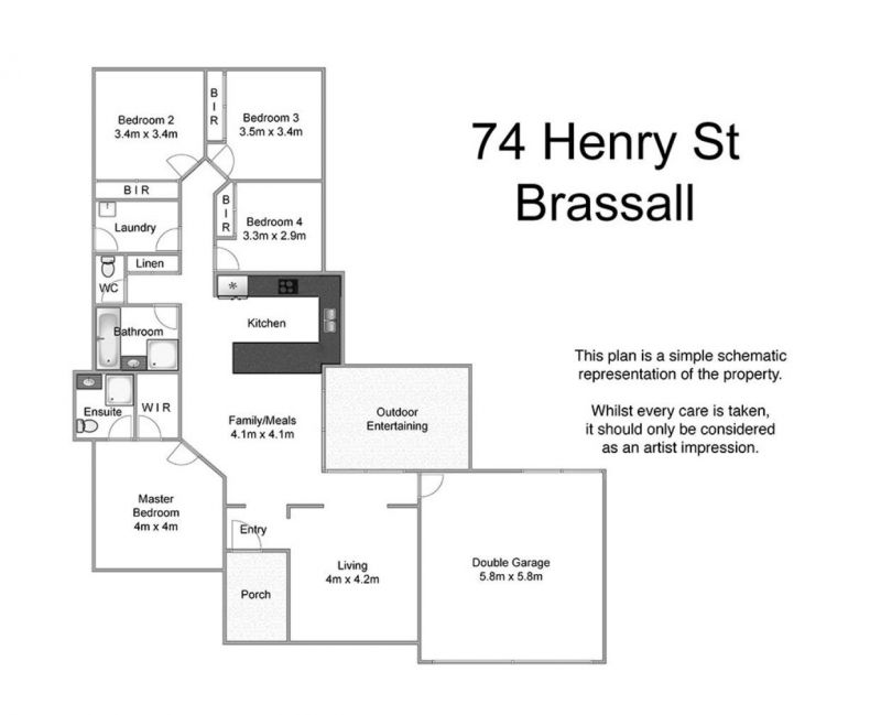 The property boasts four bedrooms with walk in robe and ensuite to master, plus built-ins to the remaining three bedrooms. There is a reverse cycle air conditioner in the open plan kitchen/dining/family room and ceiling fans throughout. The main bathroom has a shower and bathtub, plus a separate toilet.