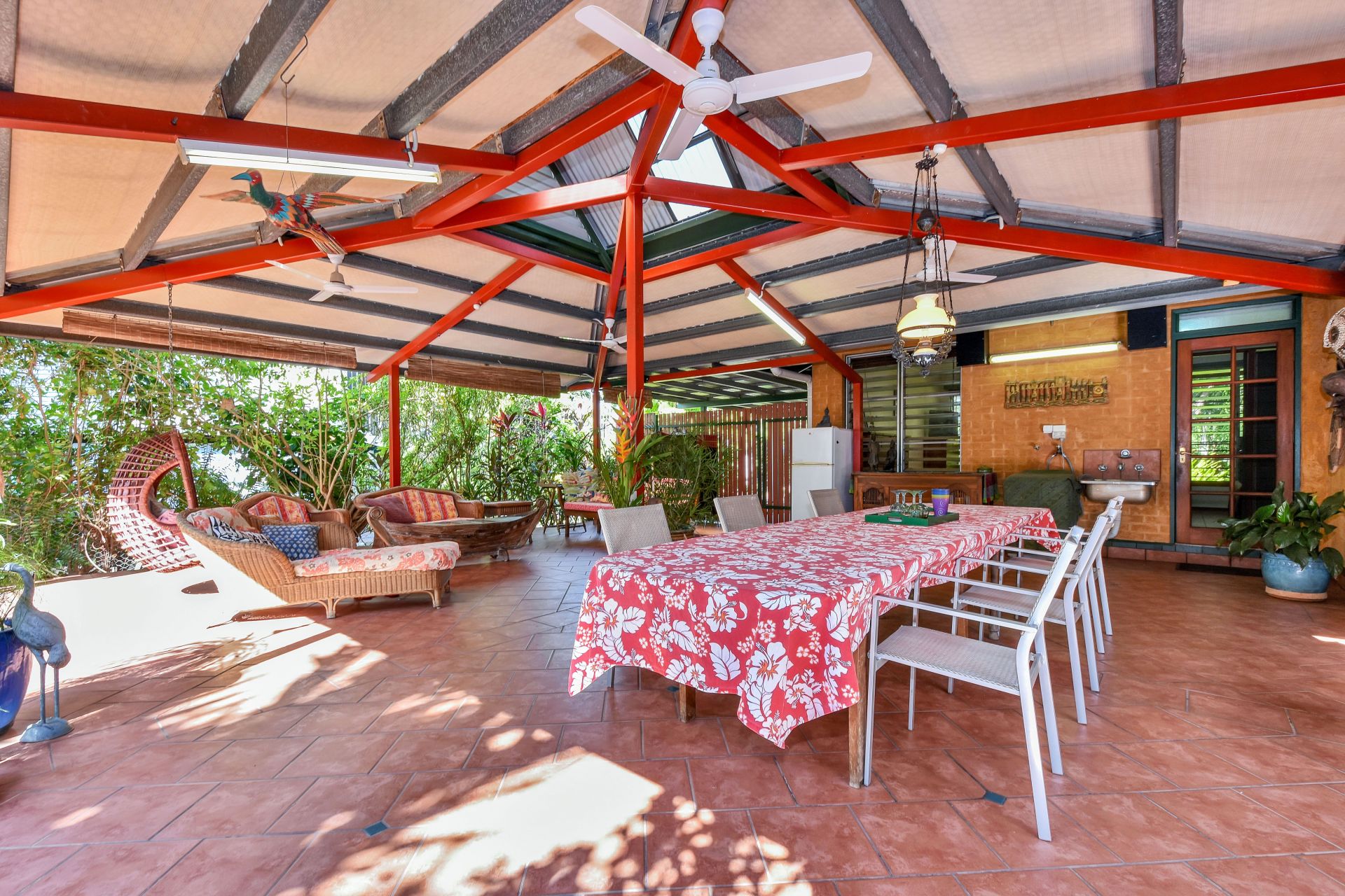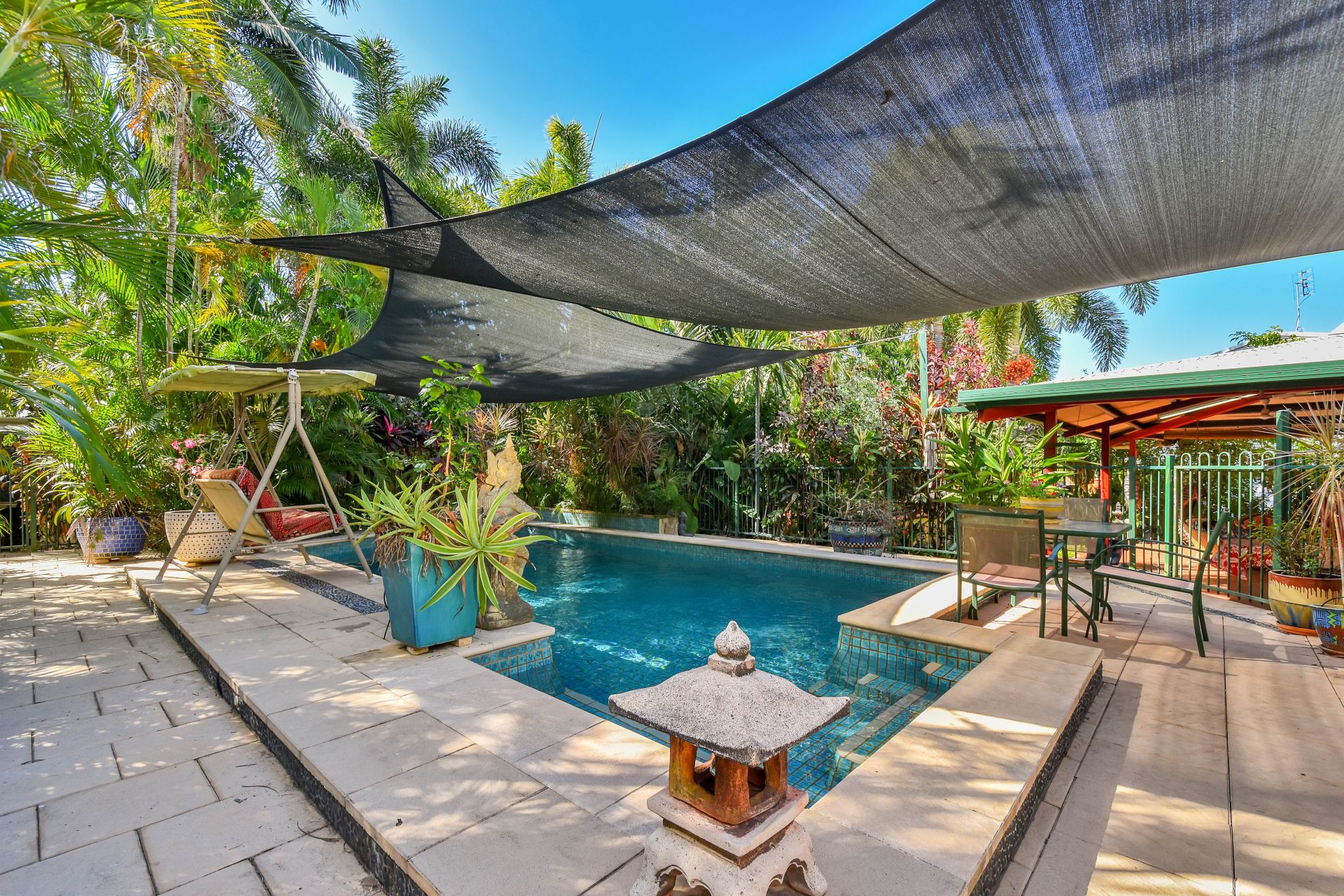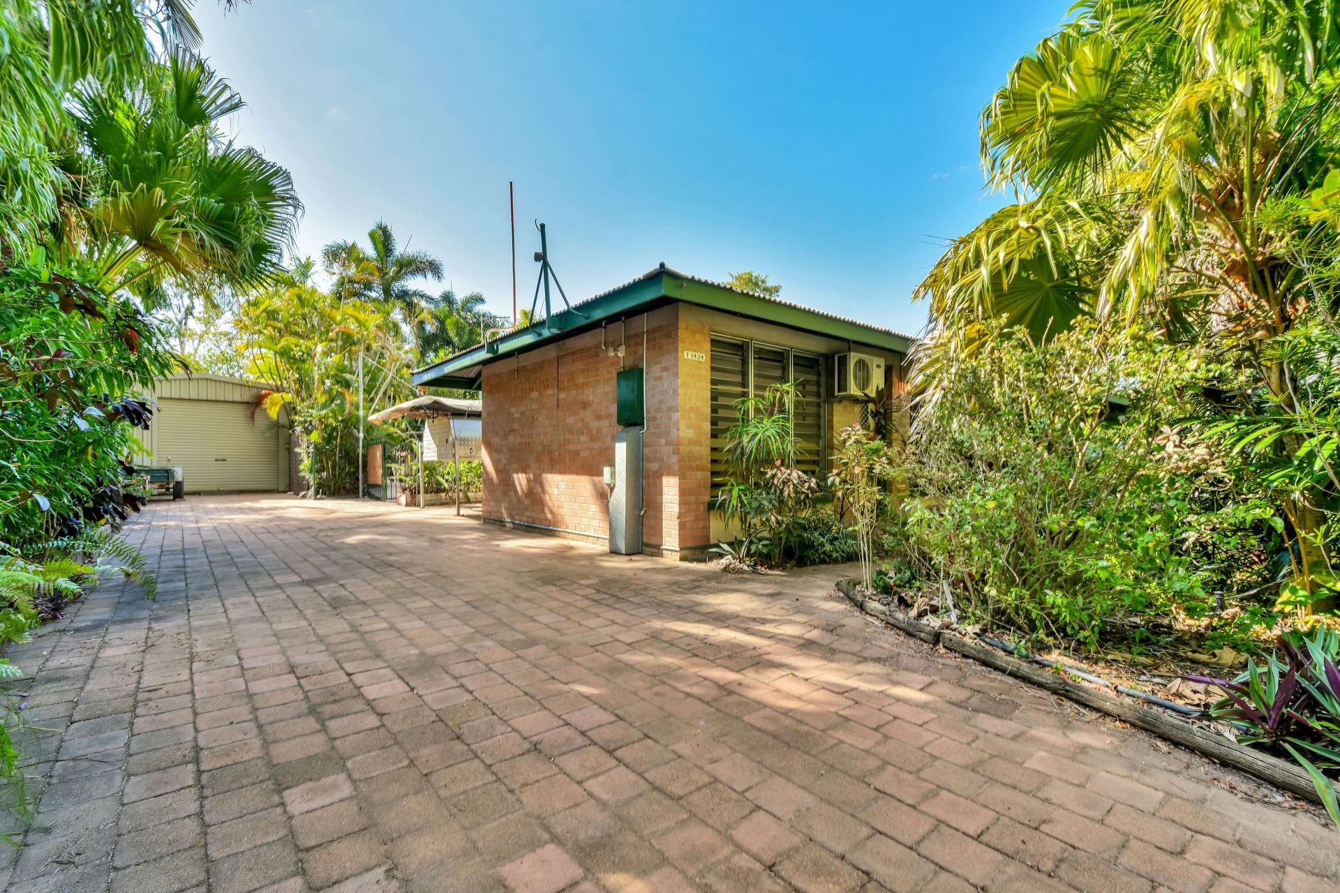 A private tropical oasis in the middle of Darwin. This large 936m2 property boasts a solid, ground level 3 bedroom double brick house, a large tiled 80m2 verandah, living and entertainment area, an inground concrete swimming pool and large 6mx4m shed. It has an established, lush fully irrigated tropical garden with water features and paved pathways throughout creating a private low maintenance outdoor environment. It has a carport and two separate driveways for easy access with enough room for the caravan, boat, cars and other toys. It is located in a quiet area and only a short walk to the Rapid Creek Markets, Jingili Water Park, shops, restaurants, schools and only 5 minutes2km to the Nightcliff foreshore, Bunnings, Woolies and other major shopping outlets. The house has a large kitchen with good sized bedrooms, is air conditioned and tiled throughout. There is a second outside toilet and shower beneath the tiled verandah for the pool and guests. This property is sure to impress.