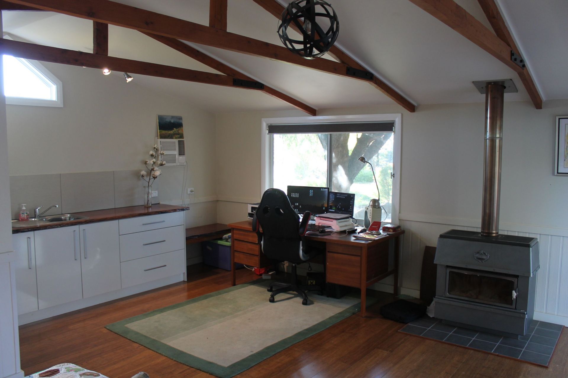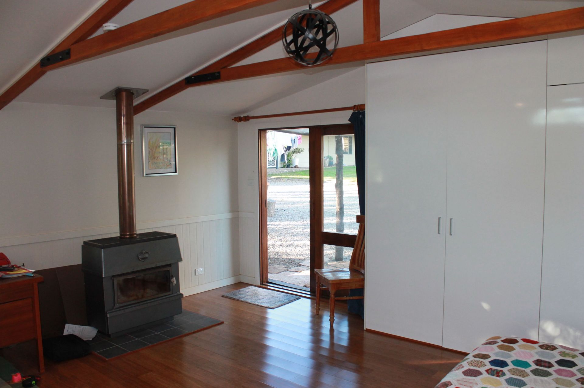 • 1 bedroom self contained detached granny flat with bamboo timber floors, A/C and log fire