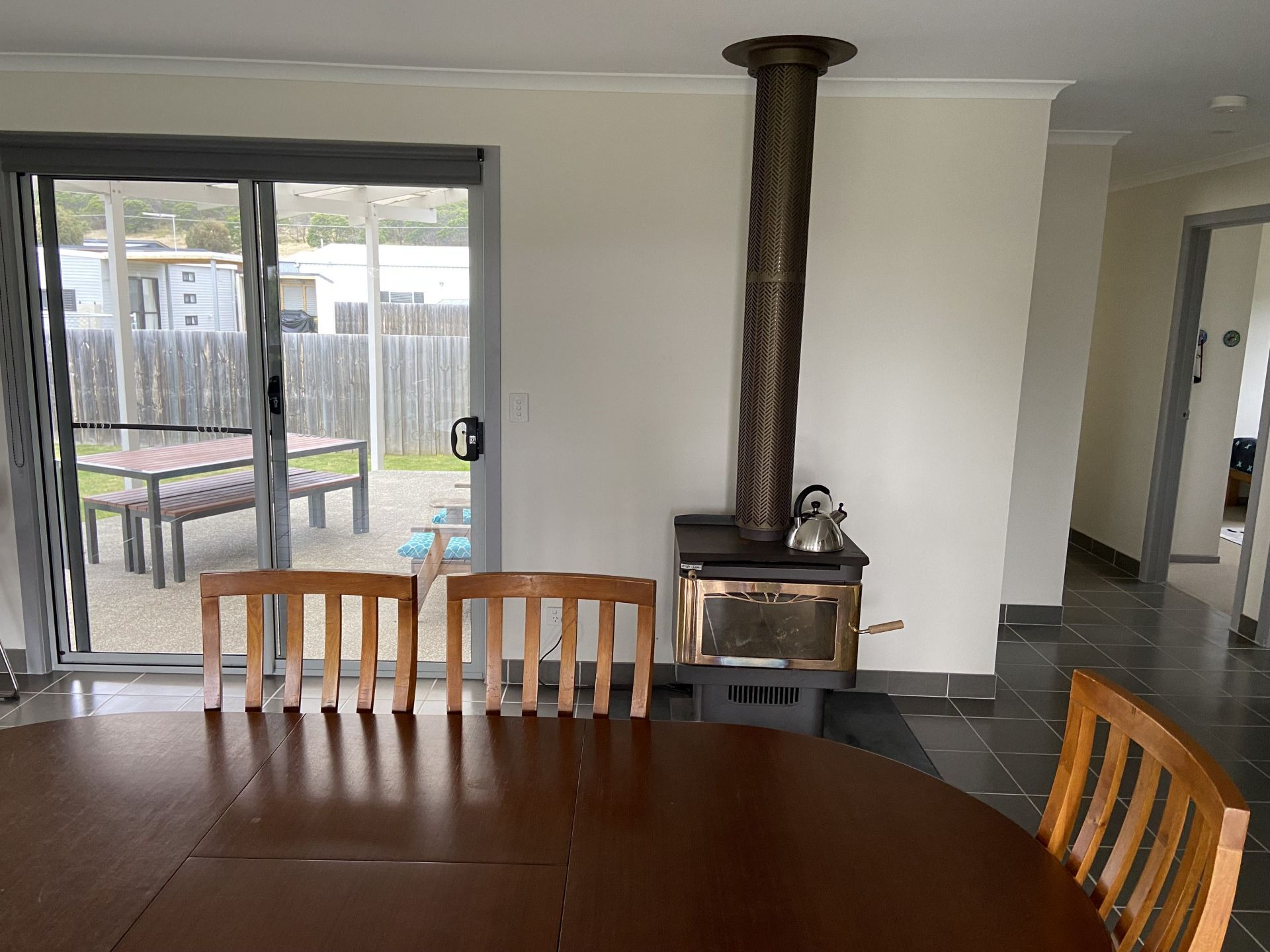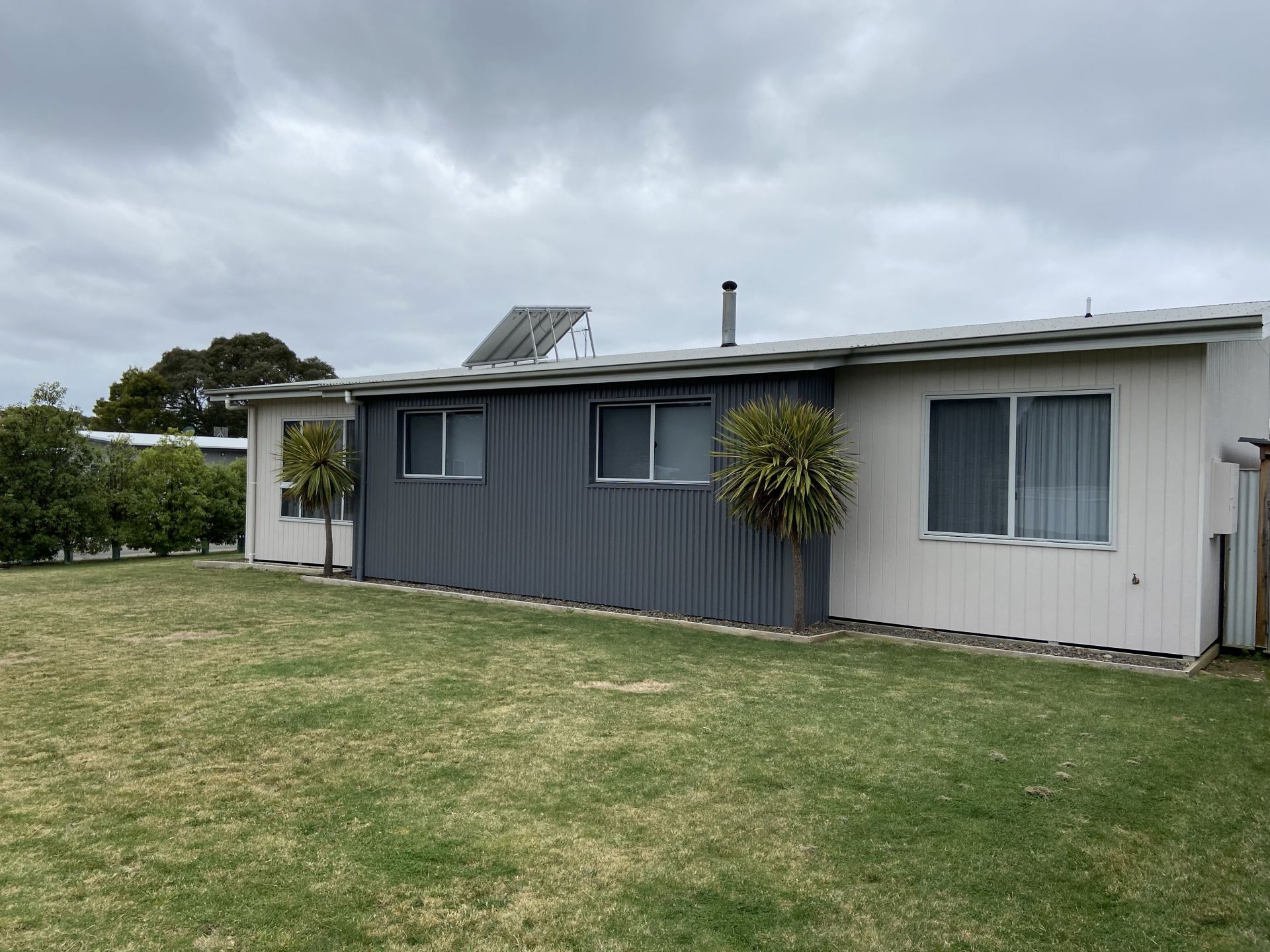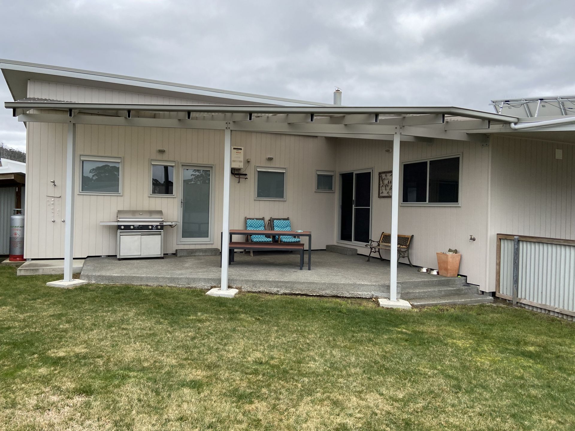 The house features modern, open plan living including entrance alcove, living room and dining room. Energy efficient with solar panels on roof, LED lighting throughout, and air conditioning. It also has a Blaze wood heater installed for those cosy winter nights (there is also undercover storage for wood in the backyard).