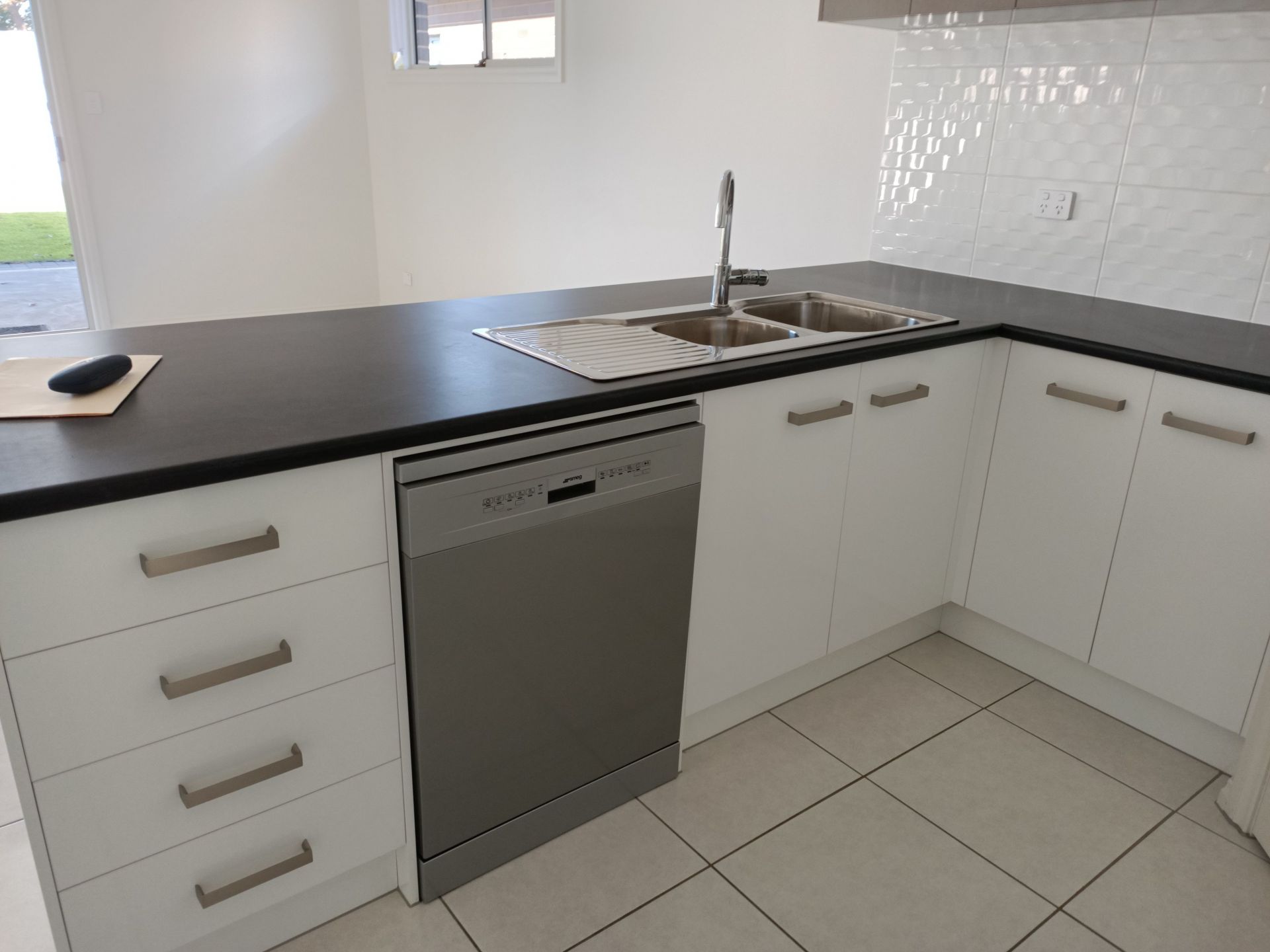 - Modern kitchen with plenty of storage, pantry, temperature-controlled gas hot water, gas cooktop and electric oven and a SMEG dishwasher.