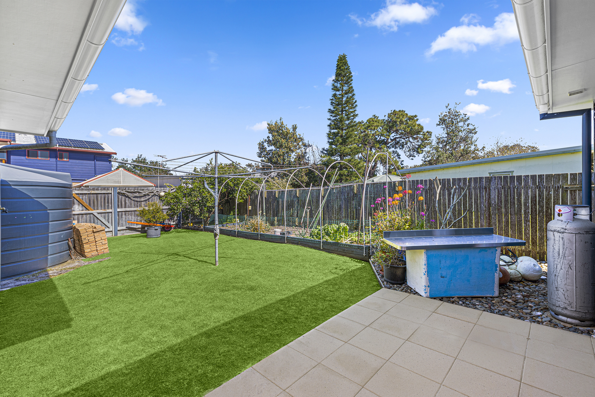 Large veggie garden with back gate to escape to club, beach, tennis court.