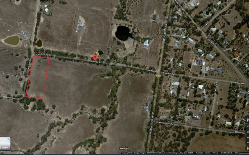 Idylic 3acre Block of land for sale in LOCKWOOD SOUTH. Lot 6B as per the pic. Beautiful block with some lovely trees nestled near farming area on the corner of Francis and Hewletts Rd Lockwood. Fully fenced with new gates 90 mins drive from Melbourne, Only 15km from Aldi KFC Bunnings Bendigo - but feels a world away. This land is zoned farmland. Unique council road zone unmade road access to rear of property as well as 2 road frontages. Would need town planning permit to build on it which can take 5-6 months and cost up to $ 10,000 using a private consultant. Suit super fund investment or tiny home weekender while you apply for permits! $ 226,000. 3 acres in Bendigo area for sale.
