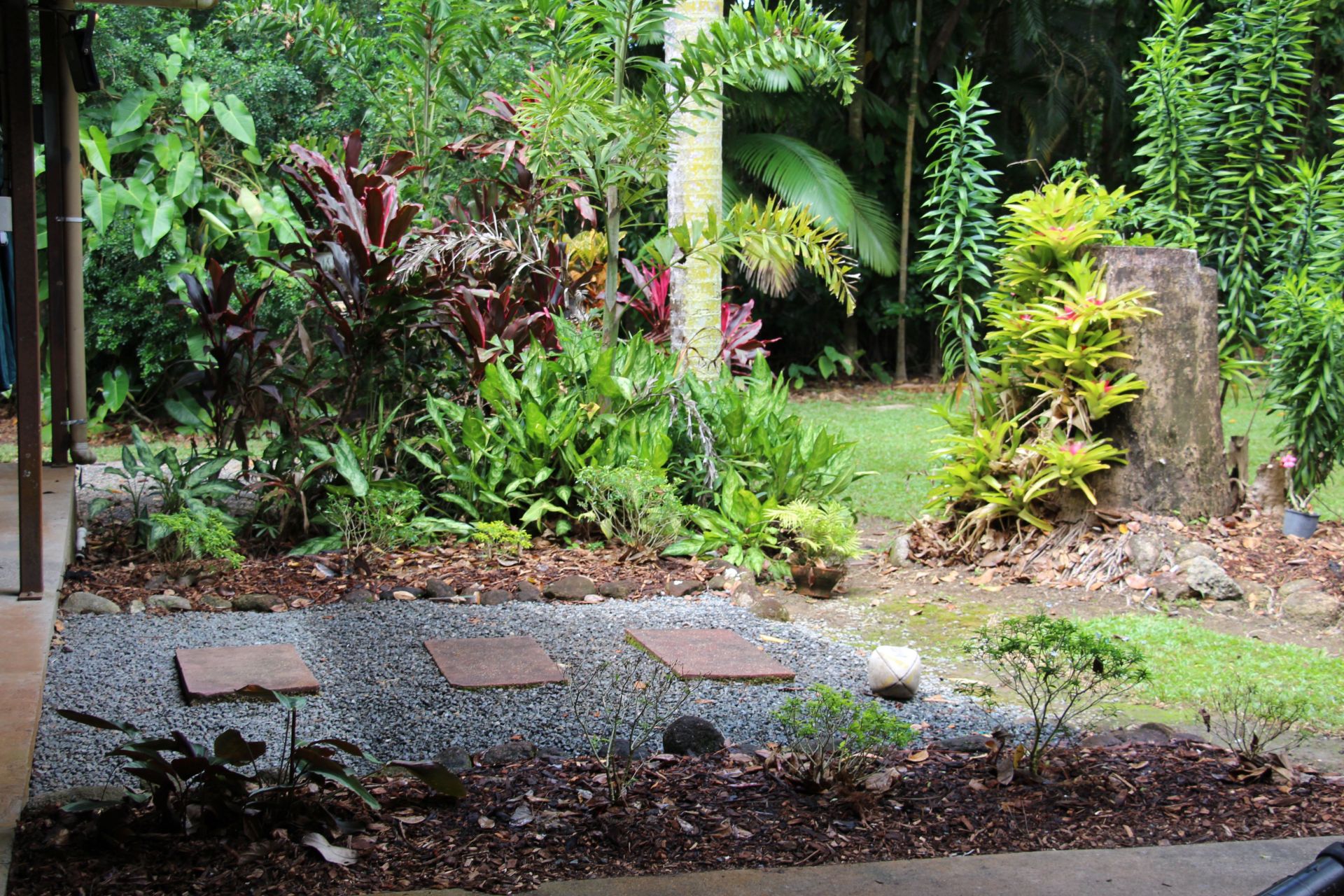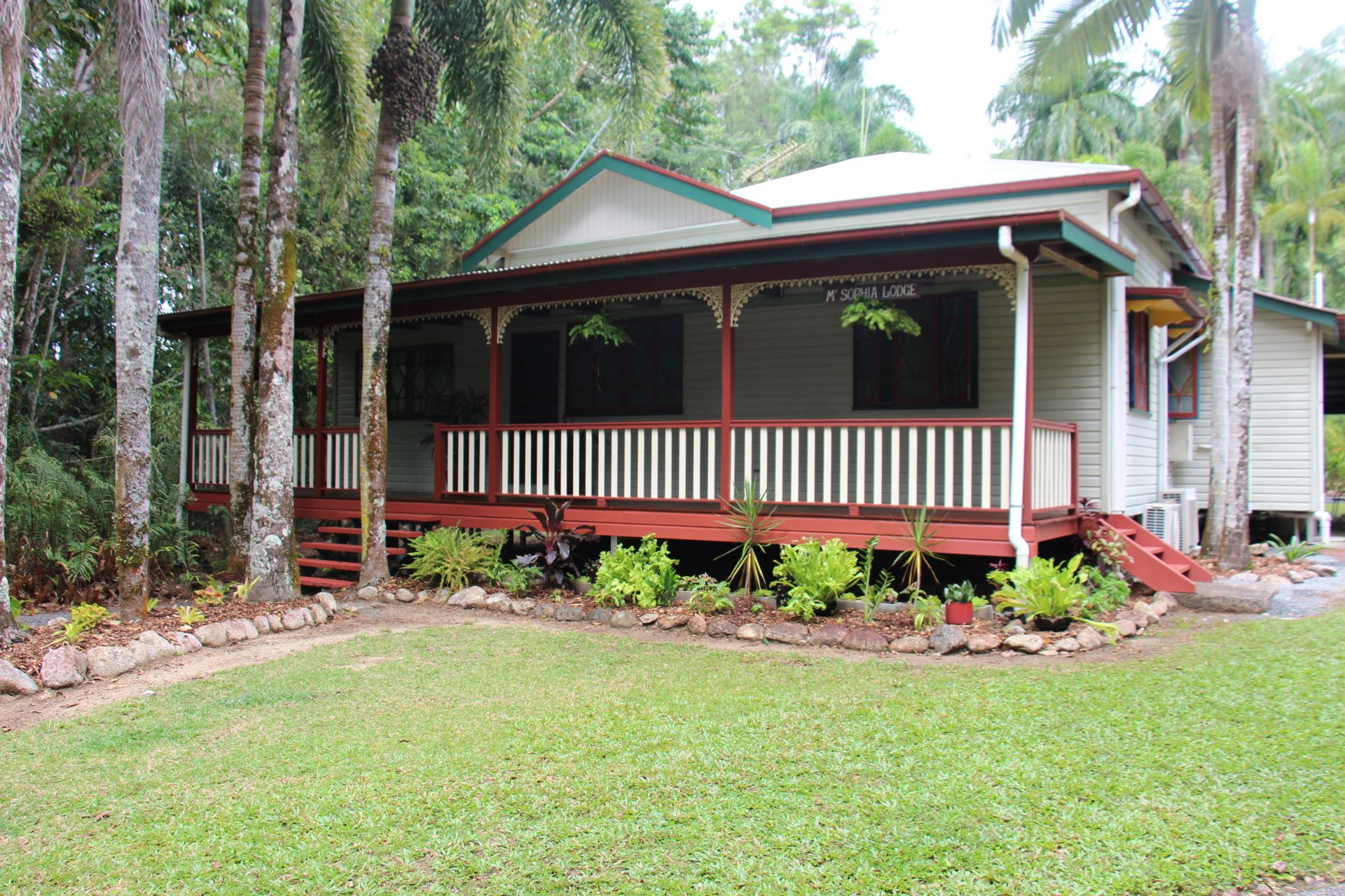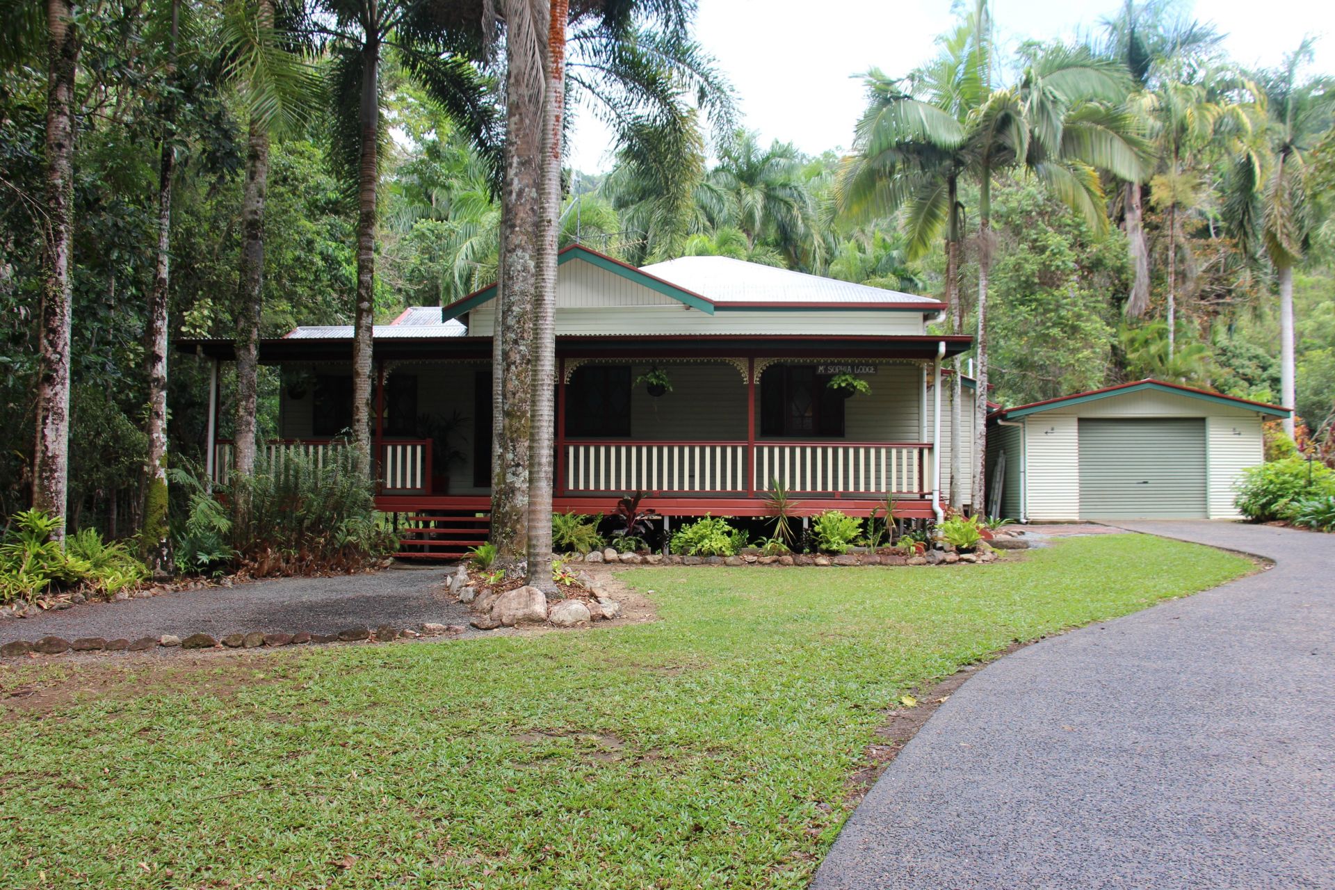 The easily maintained grounds are a tropical paradise, (needing only a ride on mower), picturesquely set in a quiet secluded Close nestled at the base of mountainous rainforests with abundant birdlife.