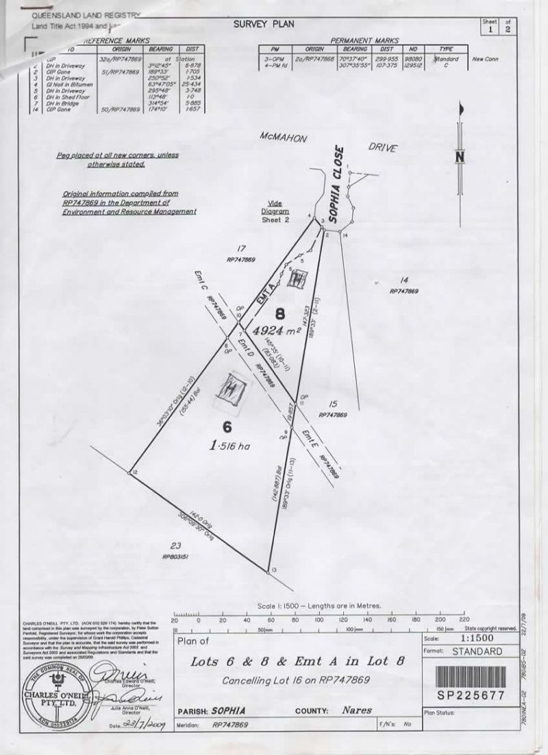 An easement creek borders the rear of the property and a driveway easement on the western boundary leads to a property beyond the creek.