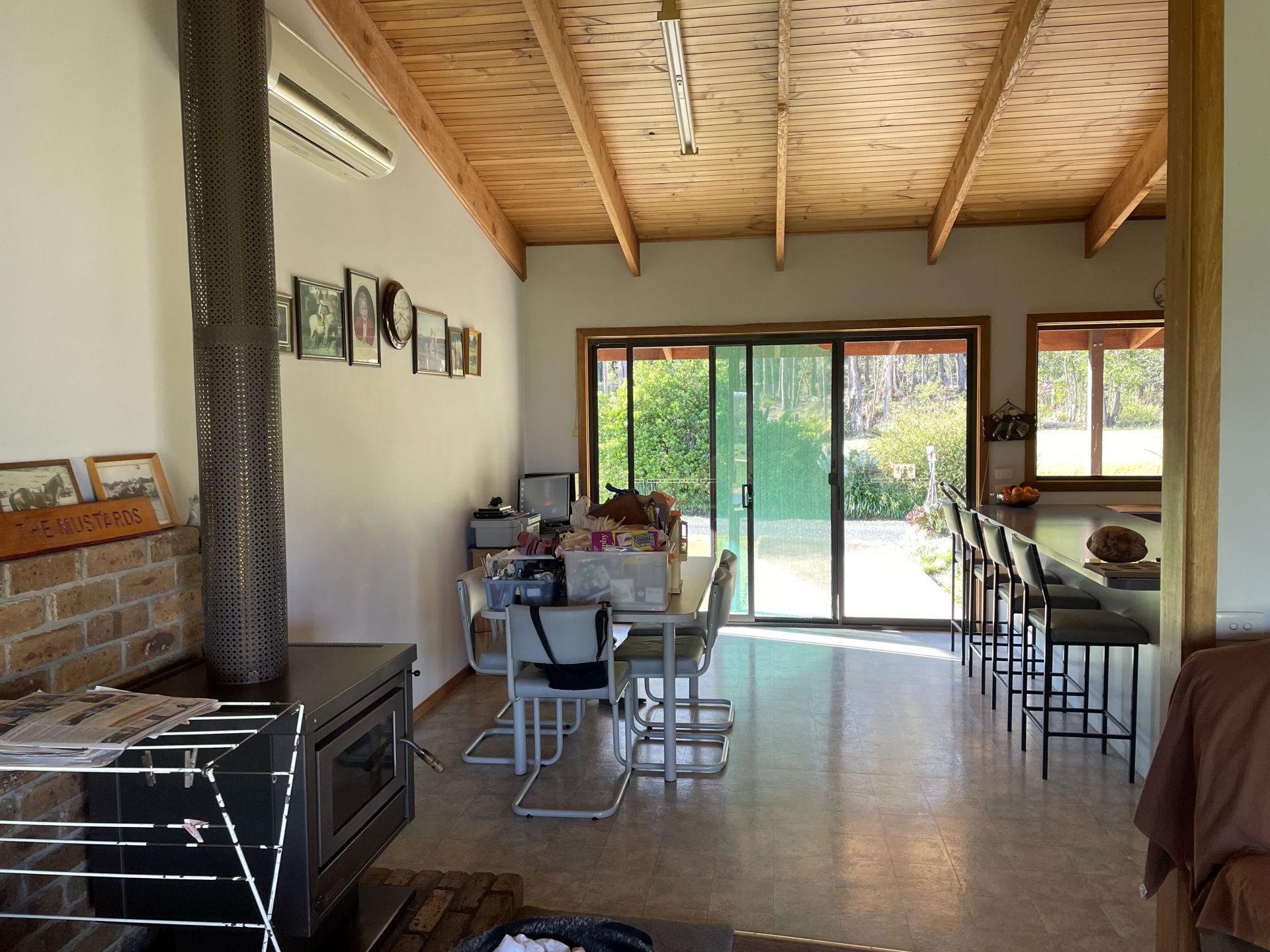 Set on approximately 10 acres of cleared farmland including frontage to the Tonghi Creek, this immaculately presented cedar home with verandas to all sides has a lot to offer. The heart of the home show cases a modern kitchen with gas cooking, open planned dining room and living area that overlooks the stunning rural views also includes the comfort of a wood fire and R/C split system the cathedral ceilings throughout the home give a feeling of space, boasting two spacious bedrooms with cupboards, large bathroom including a separate shower and bath, large laundry with plenty of storage. other features outside the property are a large 3 bay shed with concrete floor, power and a toilet, wood shedding, horse paddock with shelter well established gardens and a perfectly manicured lawn but most importantly no neighbours.