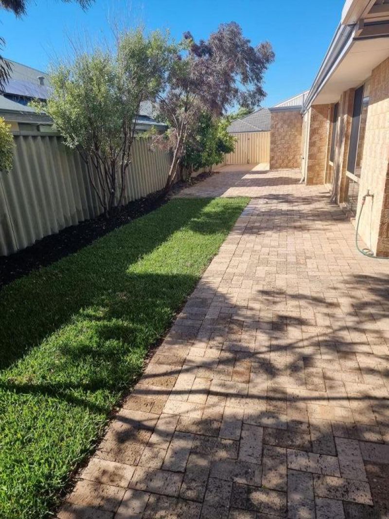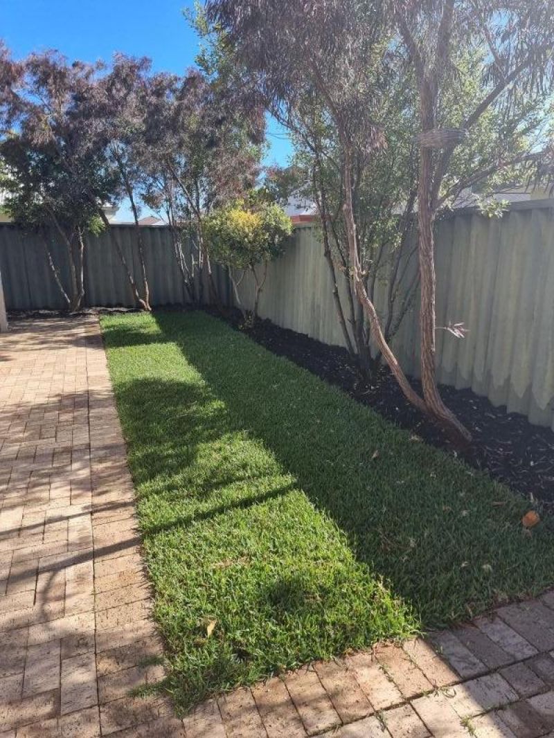 Fully reticulated easy care low maintenance gardens, with a small section of grass to sit under the established trees.