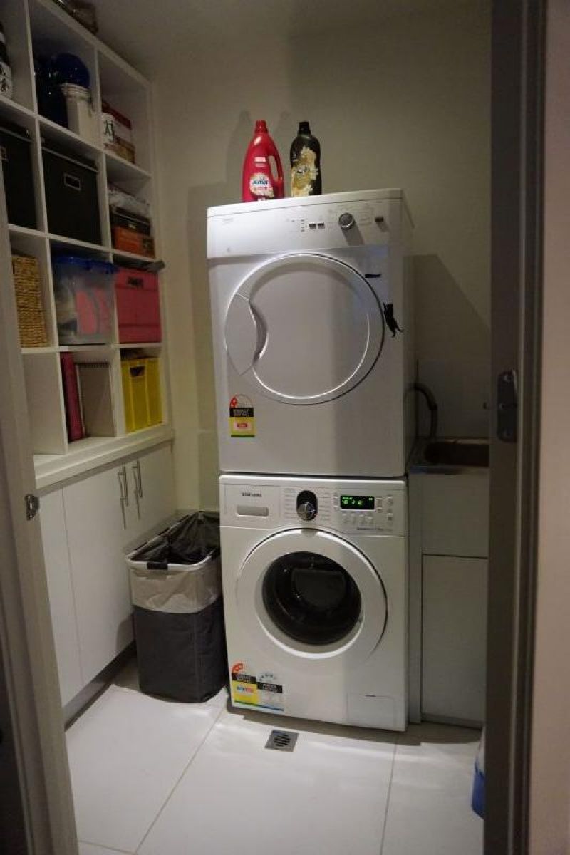 There is loads of additional storage in the full sized laundry and if you still need more space, you'll find a large 2x2.5m storage cage adjacent to your car space in the secure car park.
