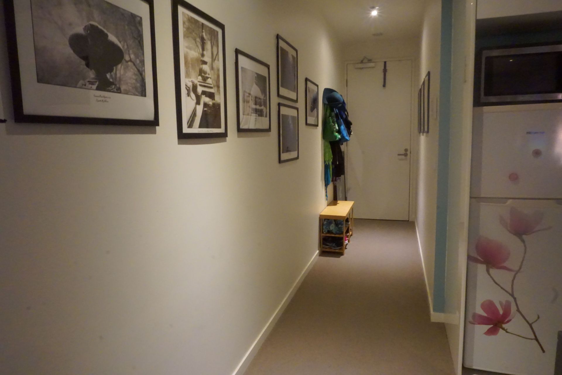Upon entering this Tardis-like apartment, you'll proceed along a wonderful hall that can be used for art or as a photo gallery. Then, you will be instantly drawn to the view across the open plan living area.
