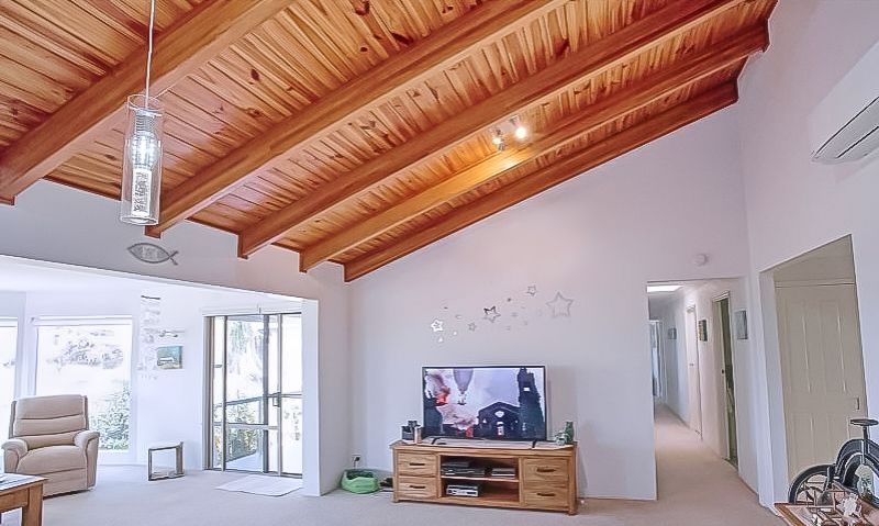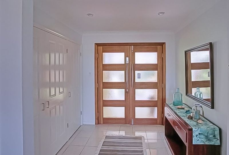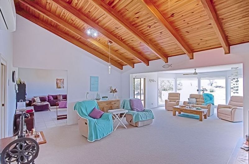 As you drive through the automatic gates of 106 Sylvan Drive, you find yourself instantly surrounded with shady palms and many colourful plants which give you a peaceful "island life" feeling. The paved driveway leads you to the garages, workshop, self-contained unit and the entry of the home which is elevated. 5 steps guide you through the double front doors opening to reveal the 5 bay windows which holds a panoramic view of the dunes with the immense Pacific Ocean as back drop. The lounge area is a casual beachy space and it leads you to the 2nd lounge room which is more formal and has a dining room attached. These parts of the house have an exposed, raked cathedral ceiling which gives the right airflow for the summer times. There is also an air condition which services the whole house.
