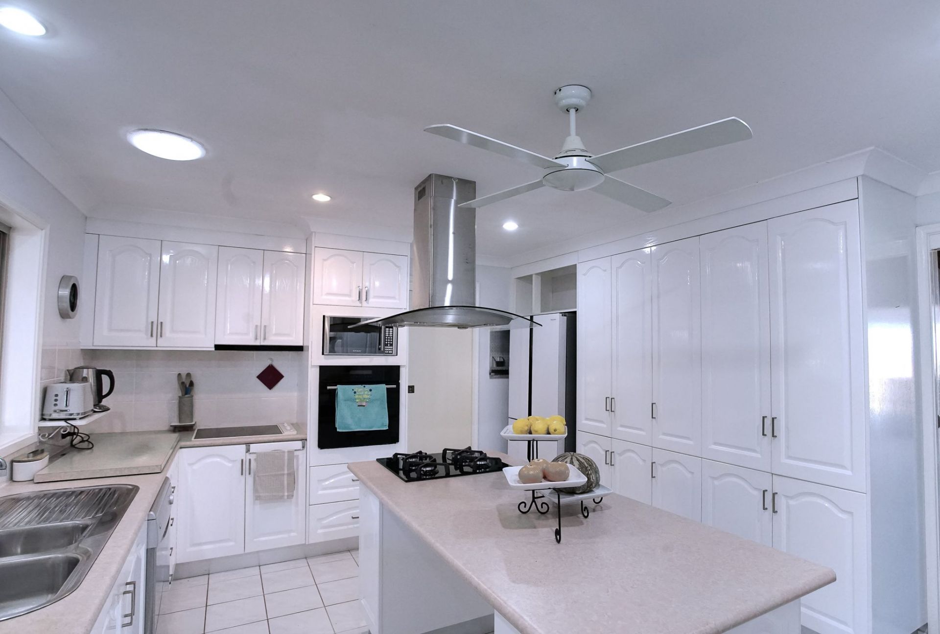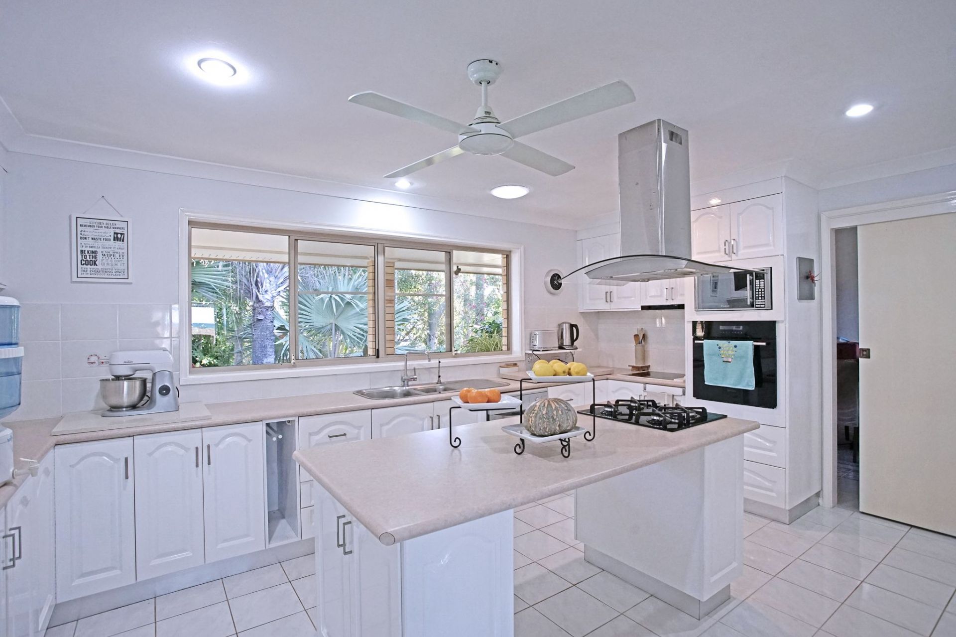The large kitchen is practical with an island bench, it has a gas glass hotplate as well as an electrical glass cook-top and many other electrical appliances. The size of the room is designed for entertaining. The Master bedroom has an en-suite with a double sink and a walk-in wardrobe. The 2 spare bedrooms have mirrored built in cupboards. 2 of the rooms have sliding doors leading out onto the veranda, this is the main entertainment area as you breathe in the ocean air, enjoy a BBQ or have a quite breakfast...all year long.