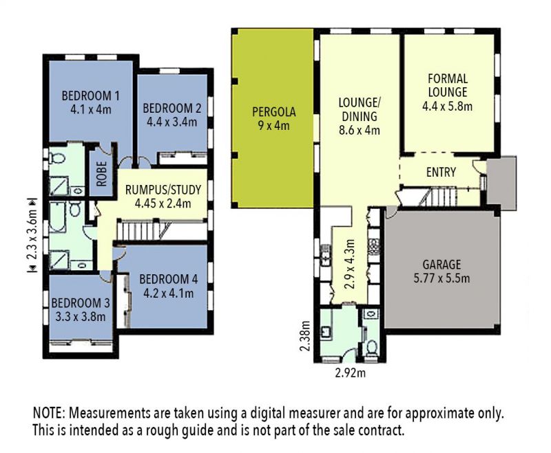 - Large formal lounge downstairs, rumpus/office area upstairs