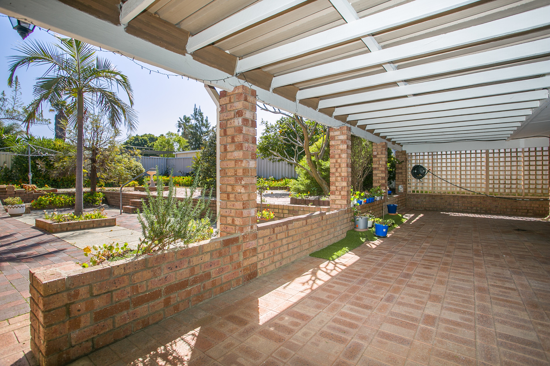 3 bedrooms, one bathroom, separate toilet, covered patio to back and side, garage at side with roller door, large brick built garage to rear 8.7m long x4.35m wide has brilliant granny flat potential with 2 windows and two doors. Parking for at least four cars. Low maintenance paved gardens. Security shutters and doors. High side of street. Walls fence and gate to front. Refurbished bathroom, kitchen, & toilet. Aircon & ceiling fans. New floorboards. Ramps to front and rear gardens. 11k to city. Walking distance to schools & shops. 684 m2 block. View by appointment only.