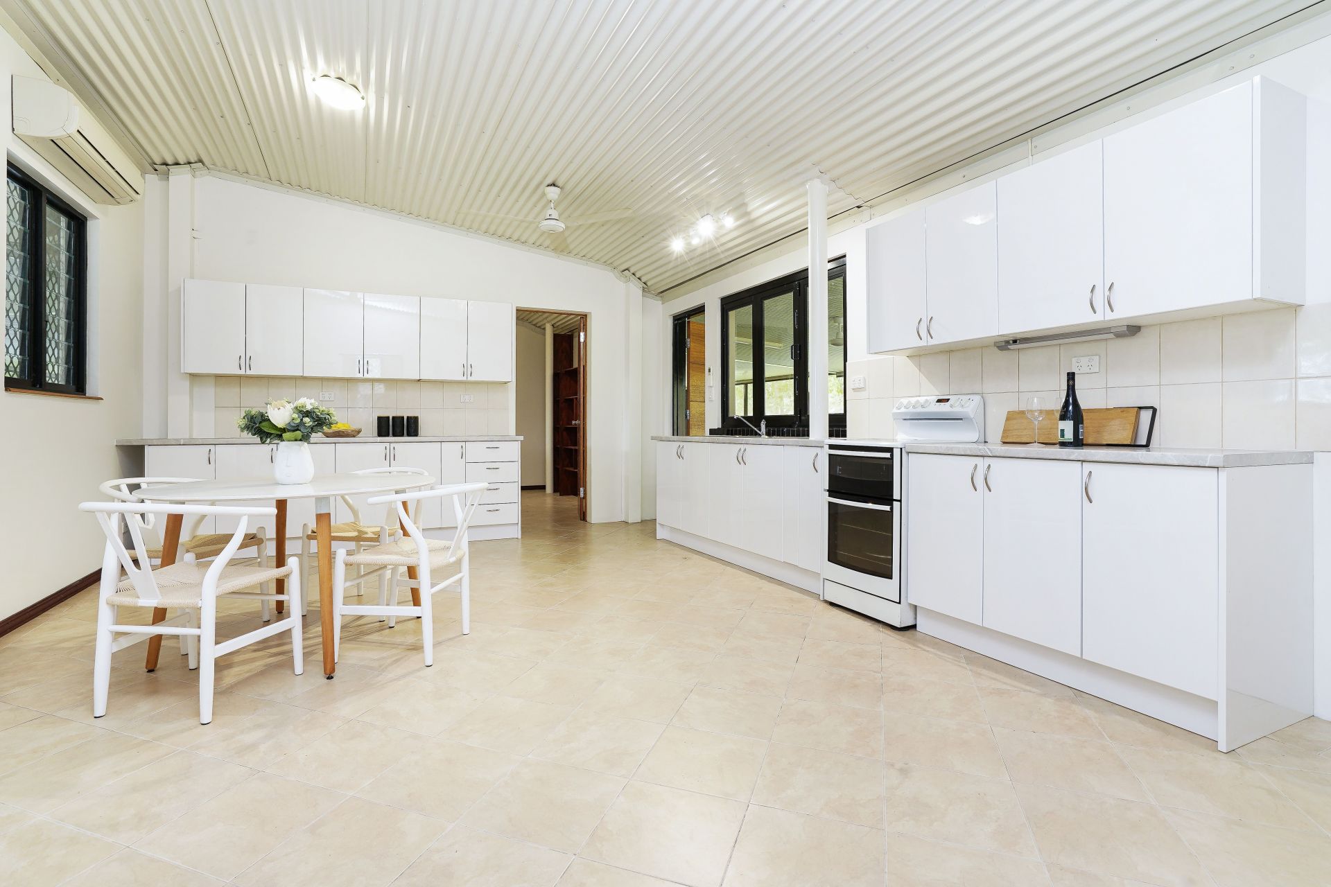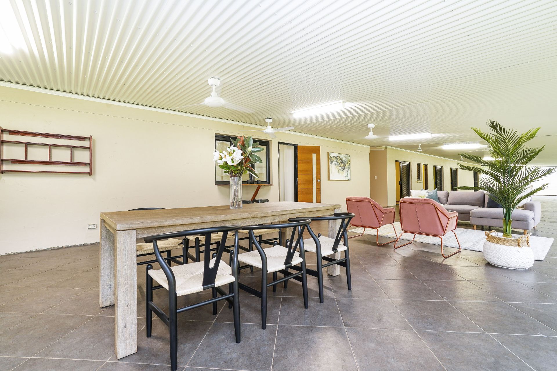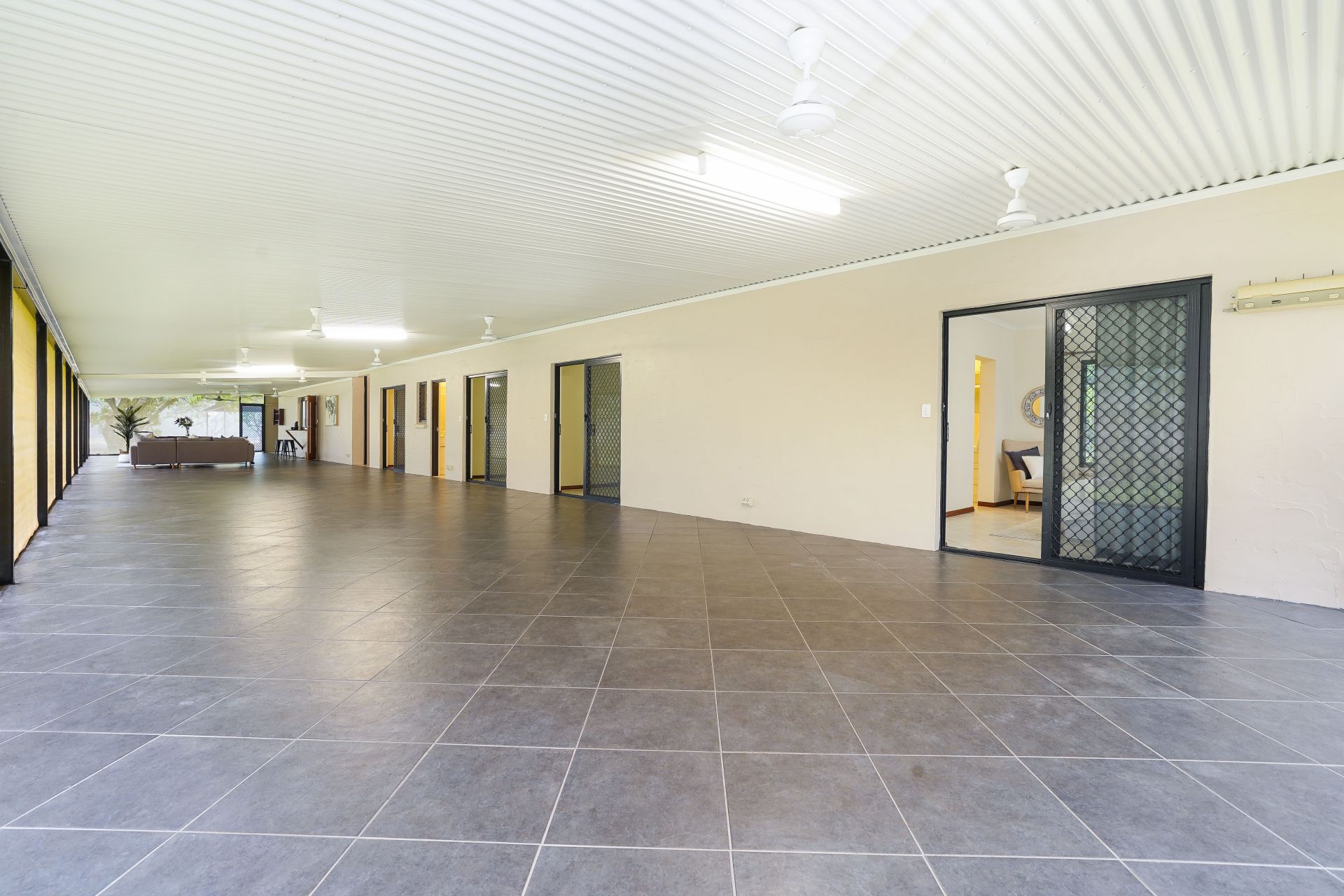 This solid rendered home is 520sqm under roof and will allow you to embrace tropical living with 2x large verandas including a spacious 7m x 33m outdoor entertaining area enclosed with shade cloth to keep the mosquitos out. Sit, relax and entertain in this space while you soak in the sounds of the abundant birdlife. A trifold window can open above the kitchen sink/breakfast bar out to the veranda and utilised as a servery. Four generous sized bedrooms contain built-in or walk-in robes. All bedrooms open to the entertaining veranda via glass sliding doors and screens which allow security and ample natural light. Each bedroom also features a large louvered window looking to the front veranda allowing natural air flow. The large verandas keep the home cooler for longer. The master bedroom offers convenience with an ensuite featuring a double shower. In addition to the ensuite, the home has 2 extra bathrooms which are great for entertaining or living with a large family. All rooms are tiled throughout and have Daikin or Panasonic AC split-systems. The house has certified wiring to plug into a generator in case of power outages.