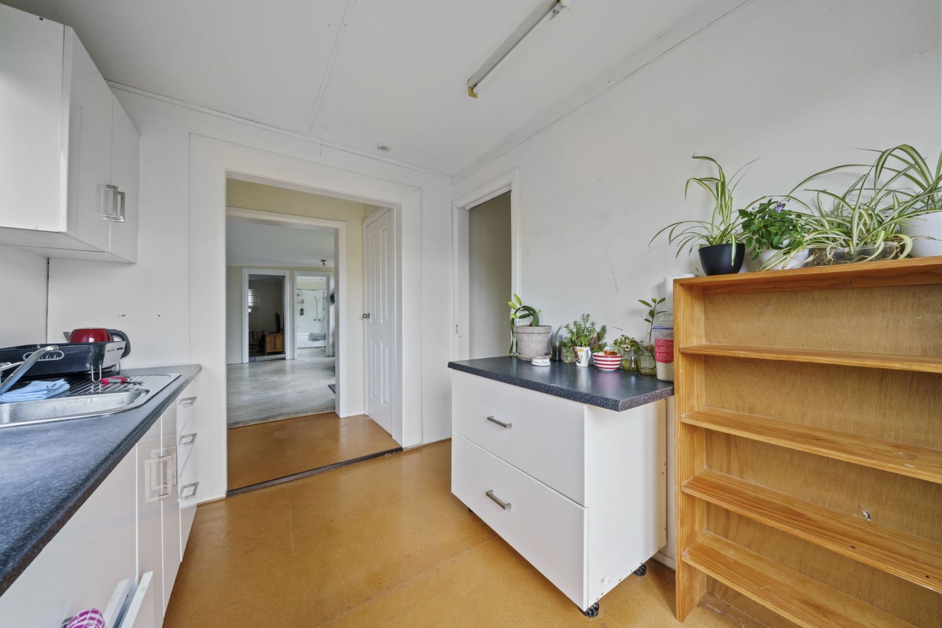 2 bedroom teenage retreat with kitchen, living area and bathroom.