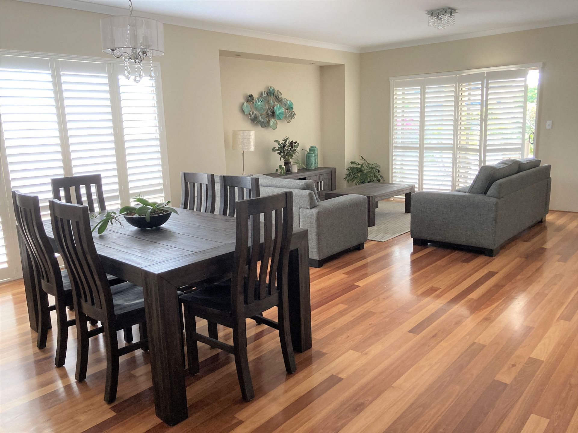 - Split system air conditioning to the kitchen, dining, living area and the master bedroom