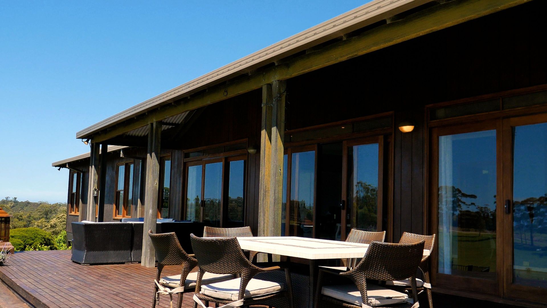 The main residence is an elegantly proportioned Western Red Cedar 3/4 bedroom home perched on the highest point, with stunning panoramic views from every room. Originally built in 1990, it has recently been lovingly restored and mindfully renovated to enhance its timeless design. Features include a brand new stone kitchen complete with European 900mm 5 burner cooktop and self cleaning pyrolytic steam convection oven, under floor heating and spa bath in the ensuite, fireplace and gas outlets, functional layout with potential for duplex living. The double-brick basement houses a triple car garage, storage area and potential cellar.