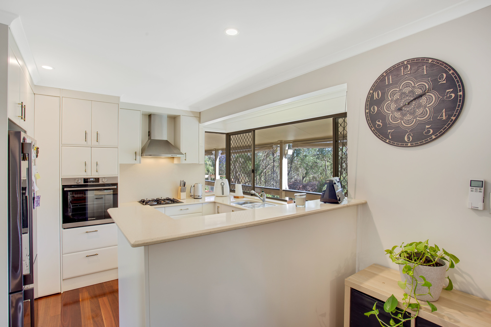 ~ Galley style kitchen with walk-in pantry, gas cooktop new elect oven, dual door d/washer and with servery to the family area which also includes access to the rear veranda.