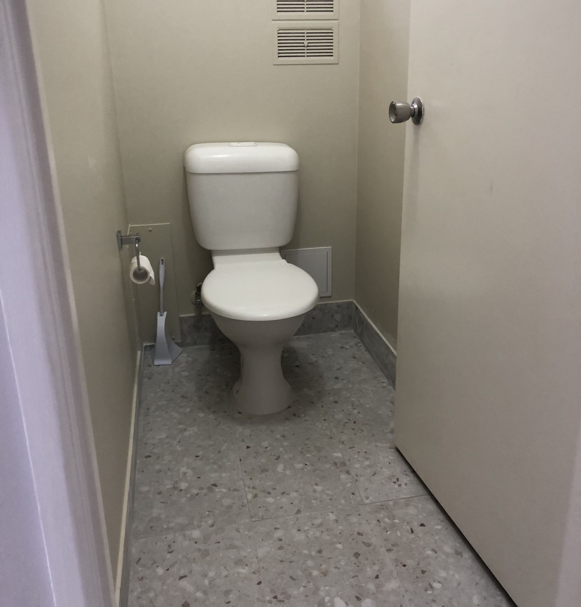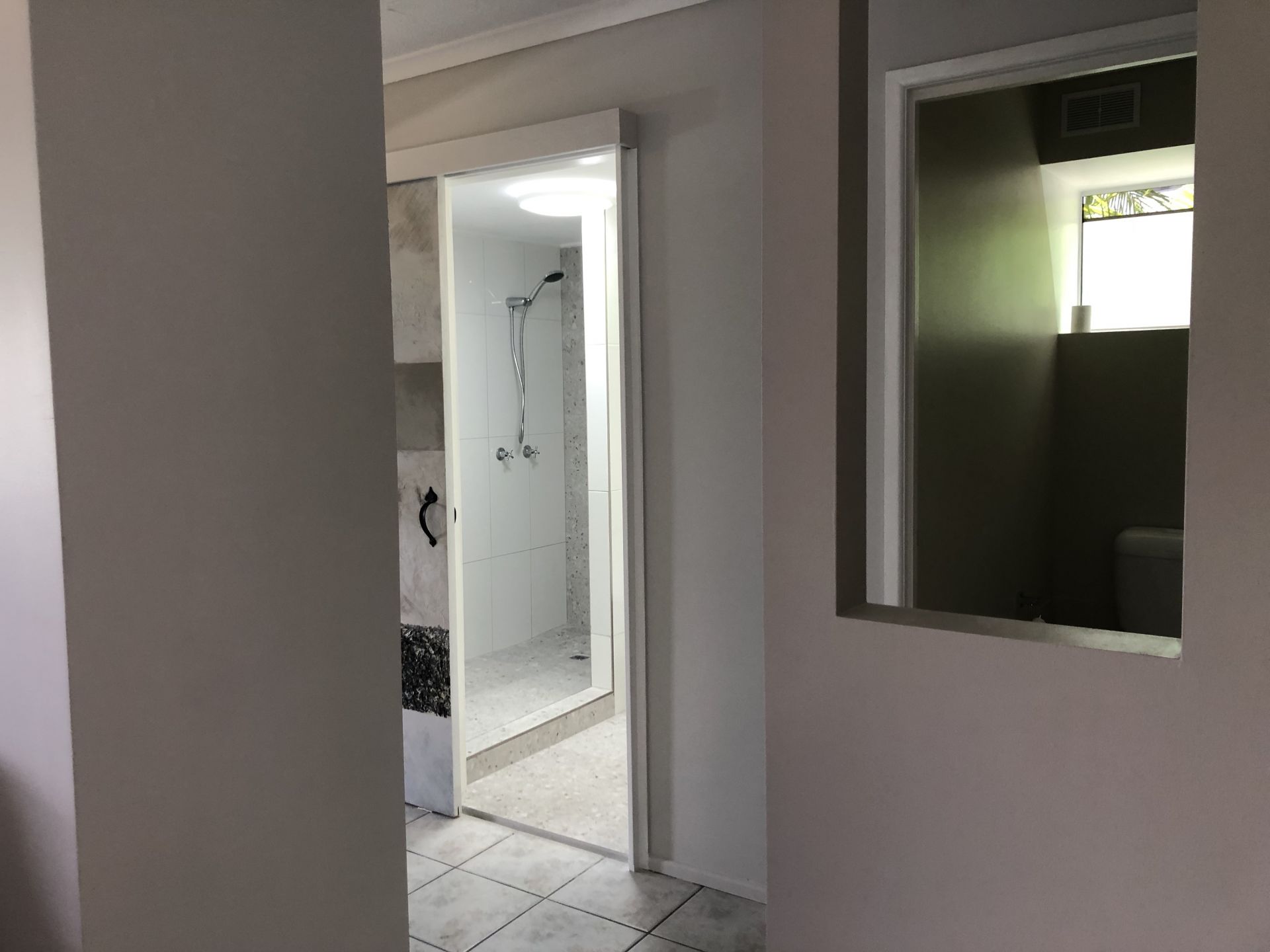 Window in the toilet and bathroom and no adjoining rooms next to bedrooms.