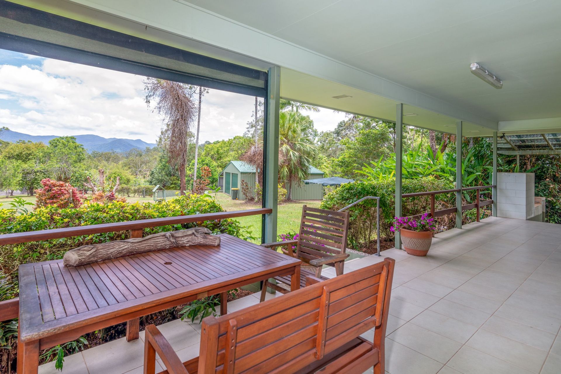 Overlooking the gorgeous misty mountains of Mount Lewis National Park on the West and Northern sides of the house are extensive tiled verandahs - a great place to enjoy your breakfast watching the sun's first touch, or sip a drink while taking in a spectacular sunset.