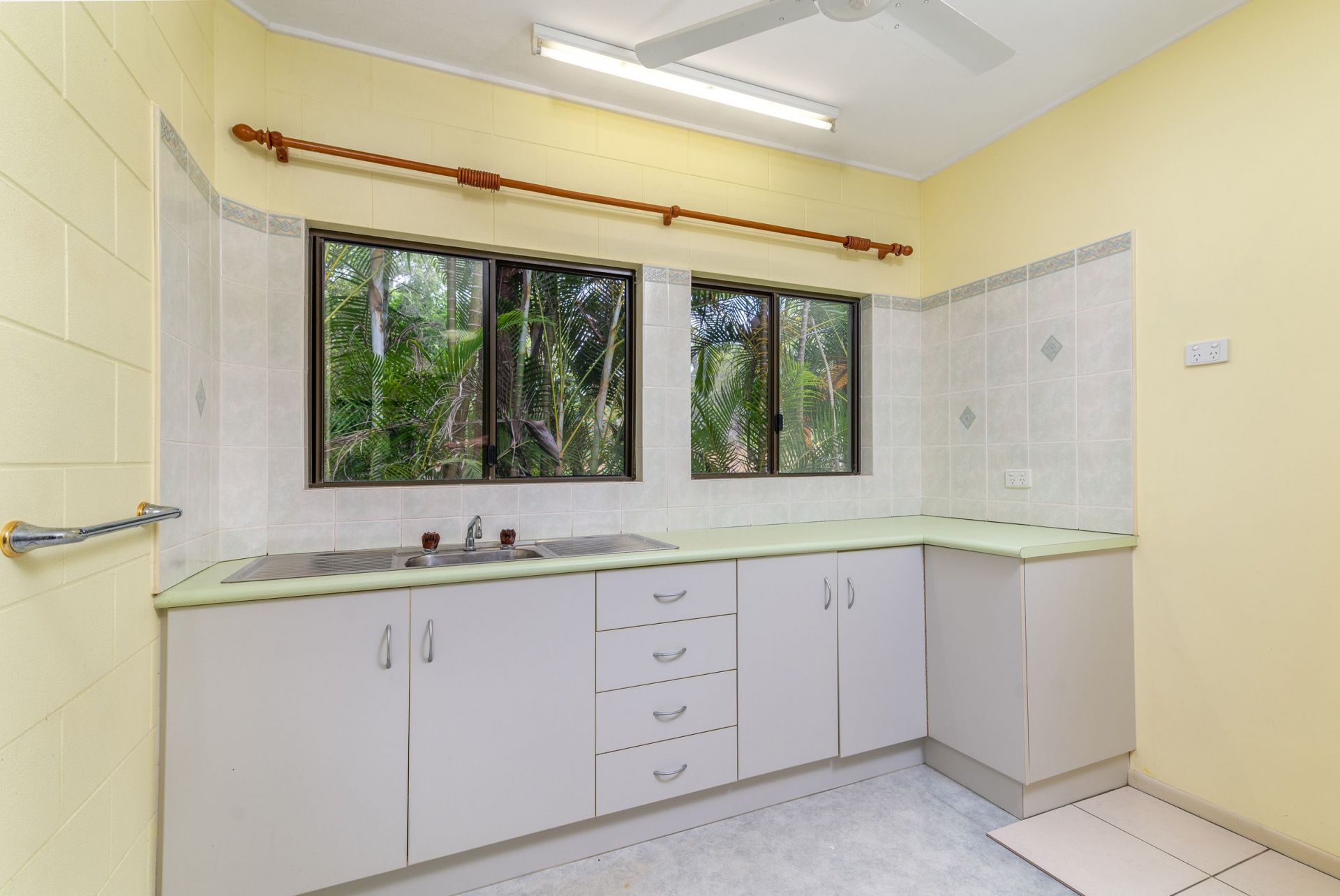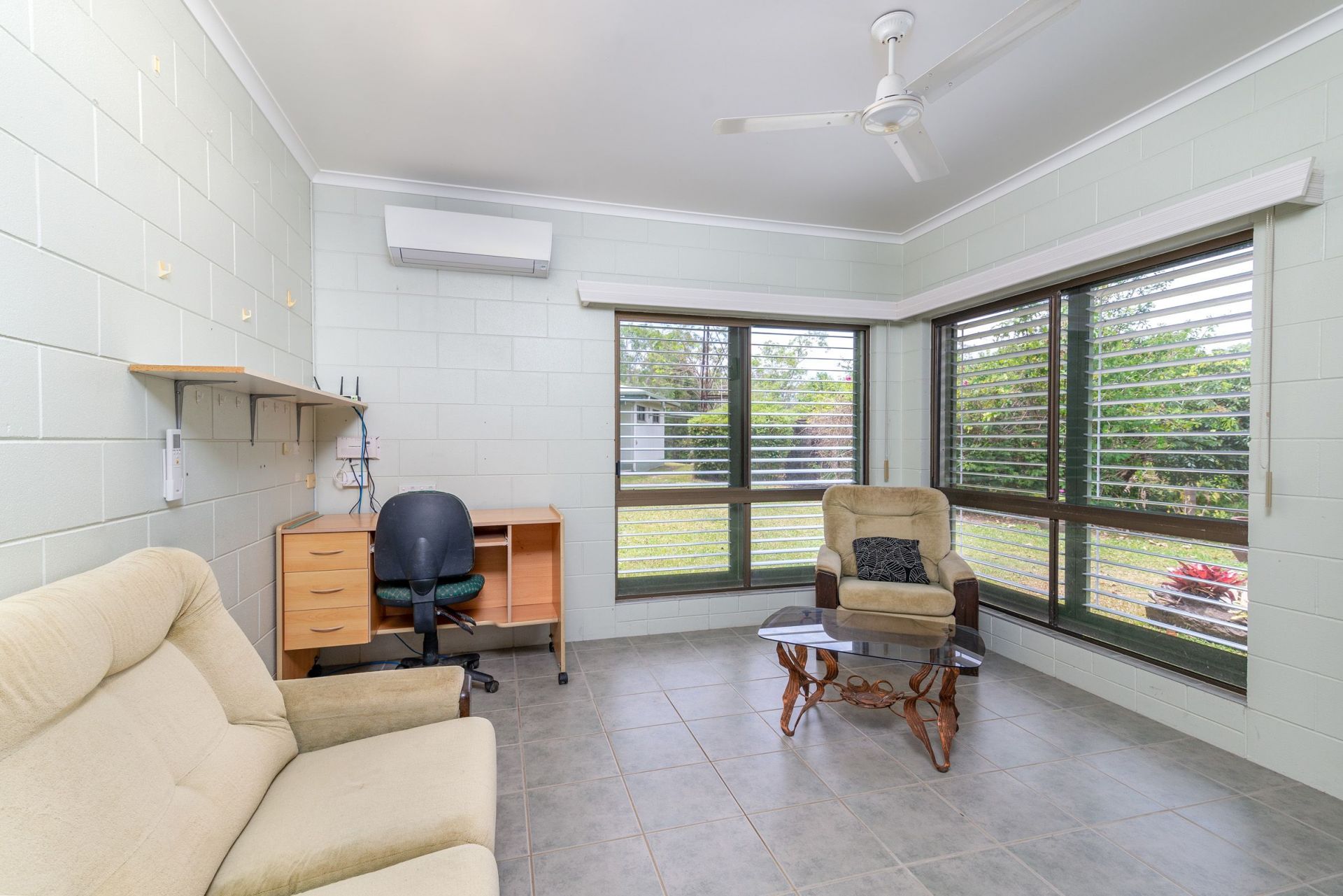 Accessed via an excellent palm-lined all-weather concrete driveway, this very solid, strongly built brick home has 3 large bedrooms, with an ensuite to the master bedroom, plus a bright and airy 4th bedroom or office (with NBN available) ideal for a home-based worker. The lounge, dining and kitchen are open plan with a superb open and airy feel and wonderful cross ventilation. All rooms are equipped with ceiling fans and are air-conditioned for the handful of days that get a tad warm. In addition, the ceiling is fully insulated. All rooms are equipped with ample cupboard space and in the kitchen there is a roomy walk-in pantry.