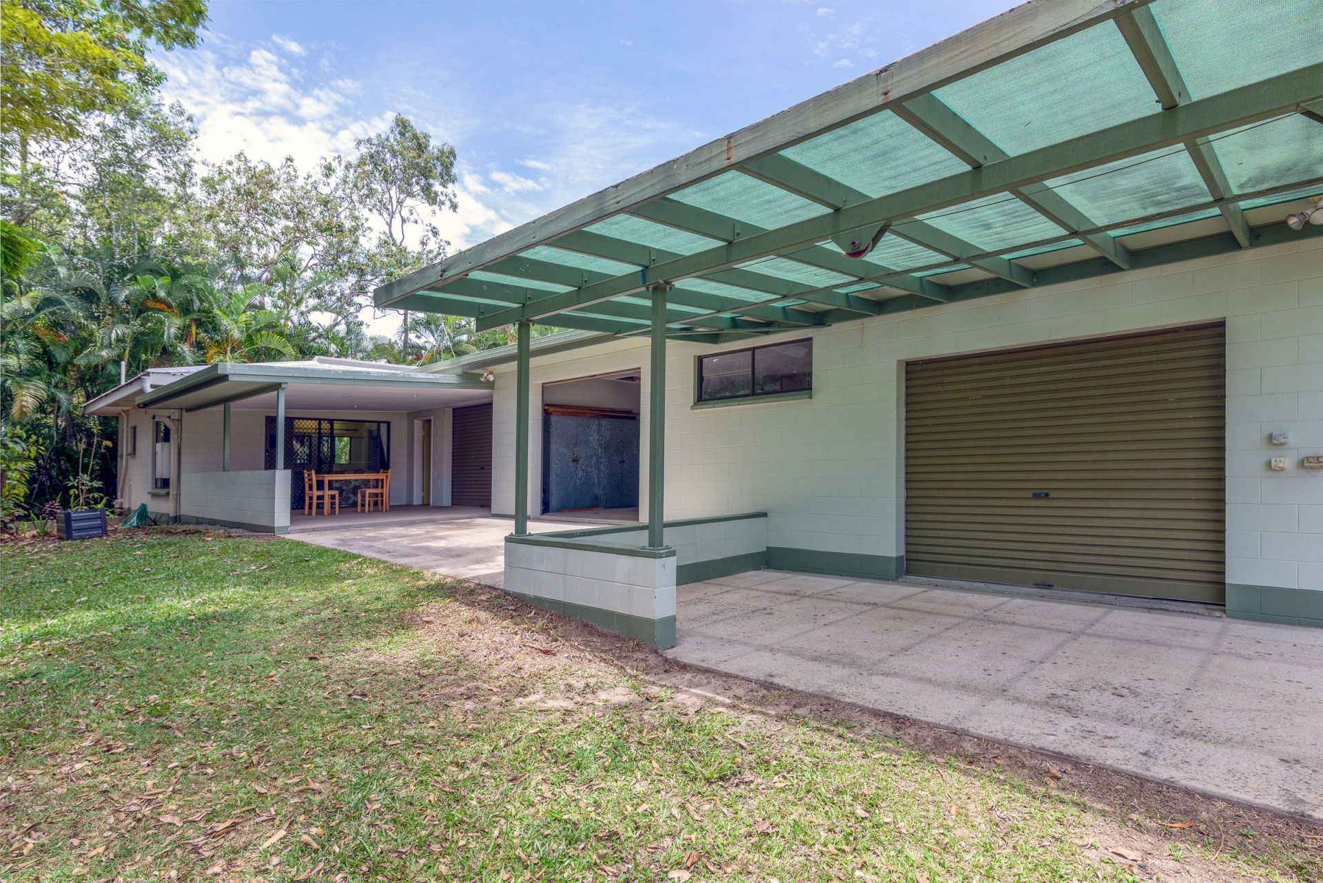 At the rear is a pergola, BBQ area and a caged area that could easily be used for a kennel, greenhouse or large aviary.