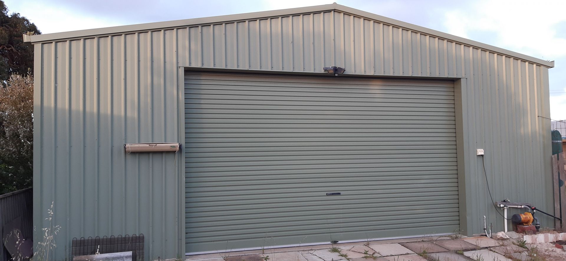 Massive 12x9m shed with 5m wide high clearance electric opening roller door with standard size roller door access into rear yard. Shed is powered with 3 phase power to the board.