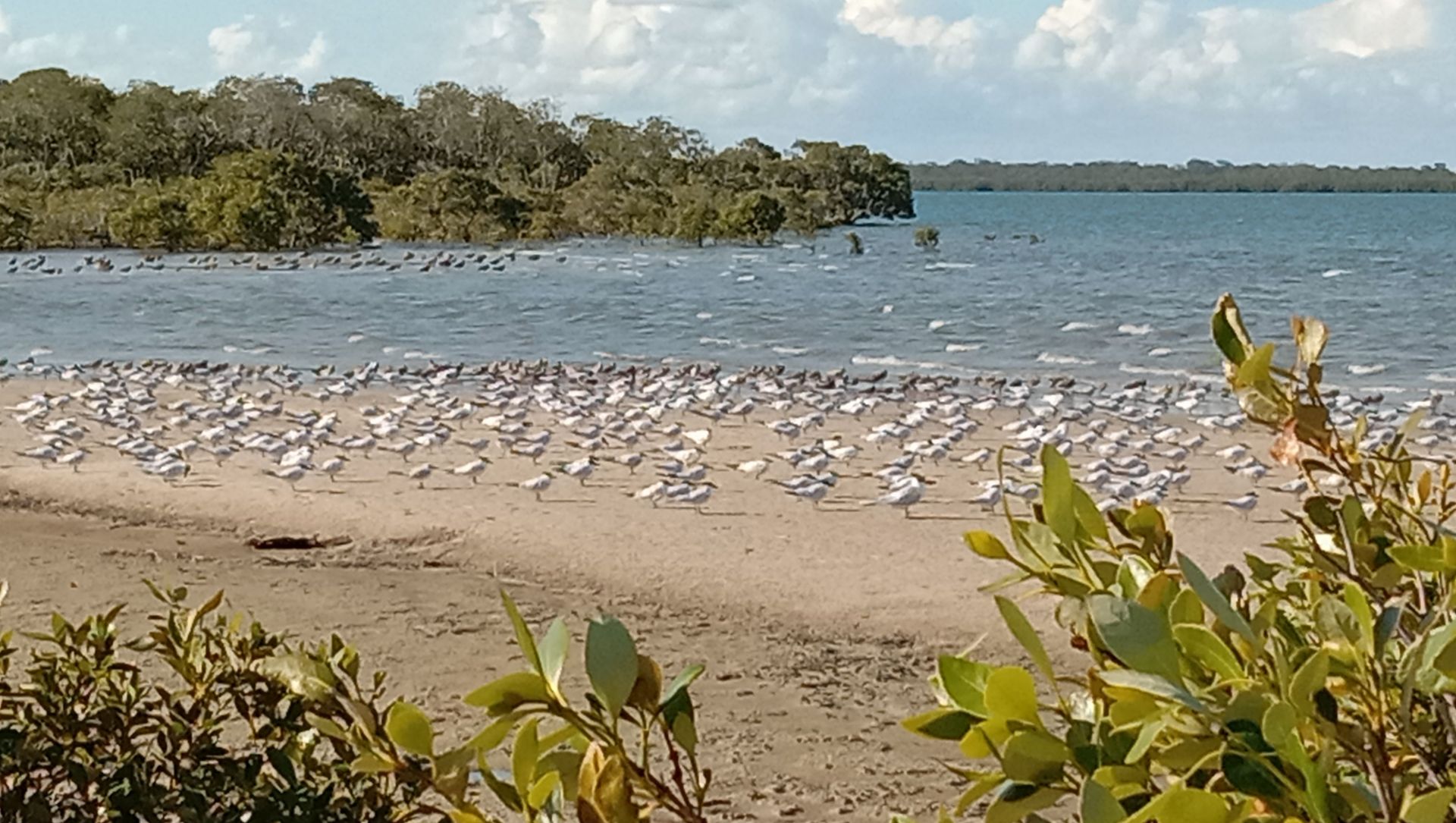 Flocks of migratory birds on Maaroom beach (including pelicans)