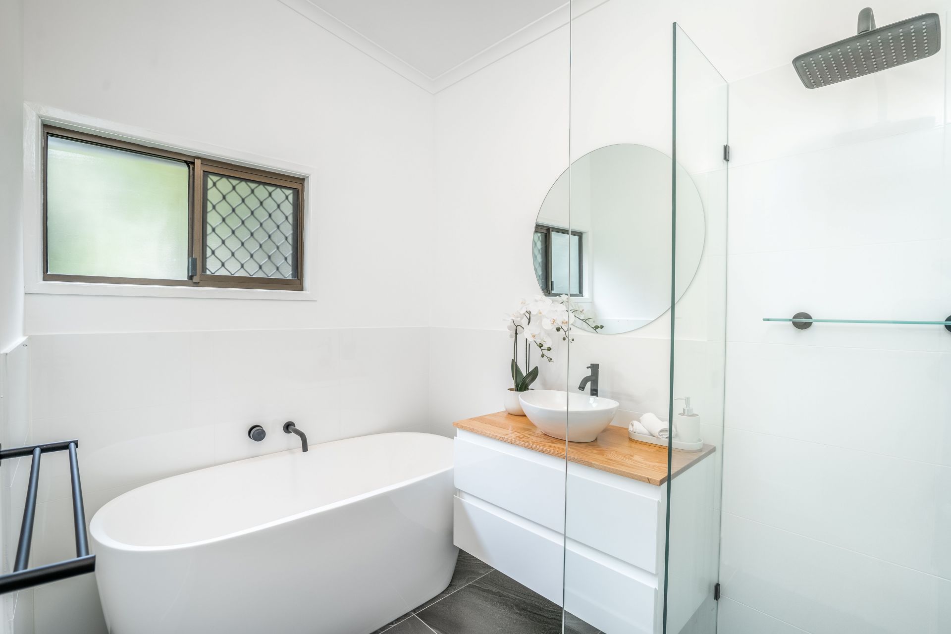 - Stunning fully renovated Bathroom with stand alone bathtub, as well as a large washbasin and a separate walk-in shower