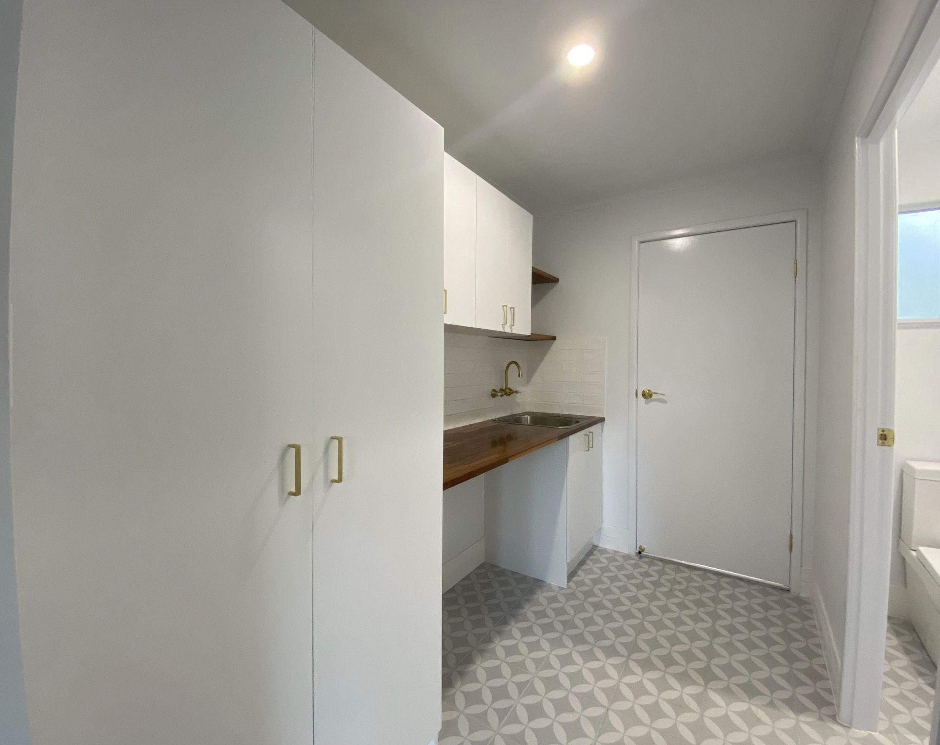A generous size bathroom with large walk in shower, bath tub and beautiful brass ceramic disc ½ turn tapware. There are 2 separate linen cupboards for plenty of storage. The double garage has an epoxy coated floor. The backyard is fully fenced. There is ample room for a boat or caravan.