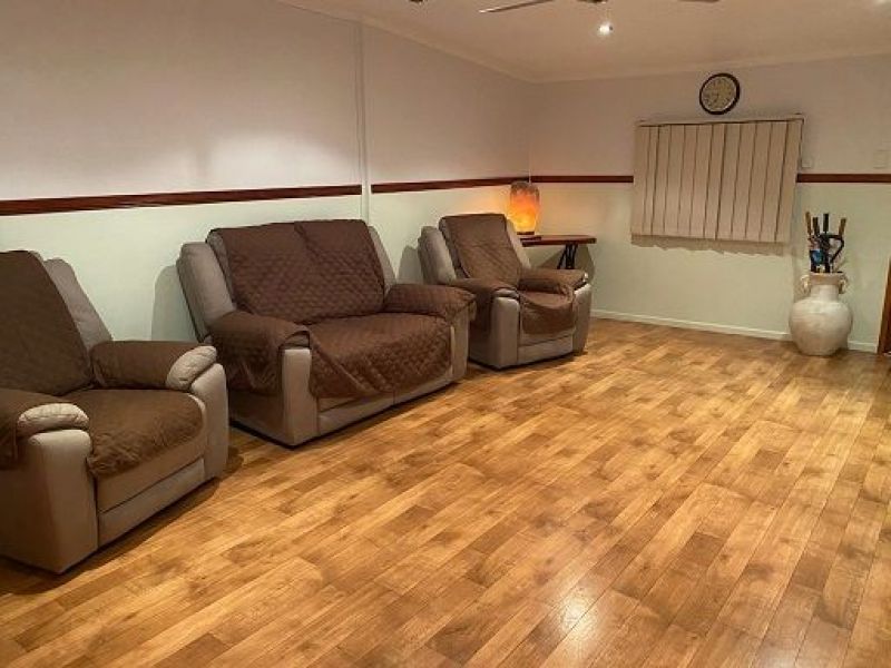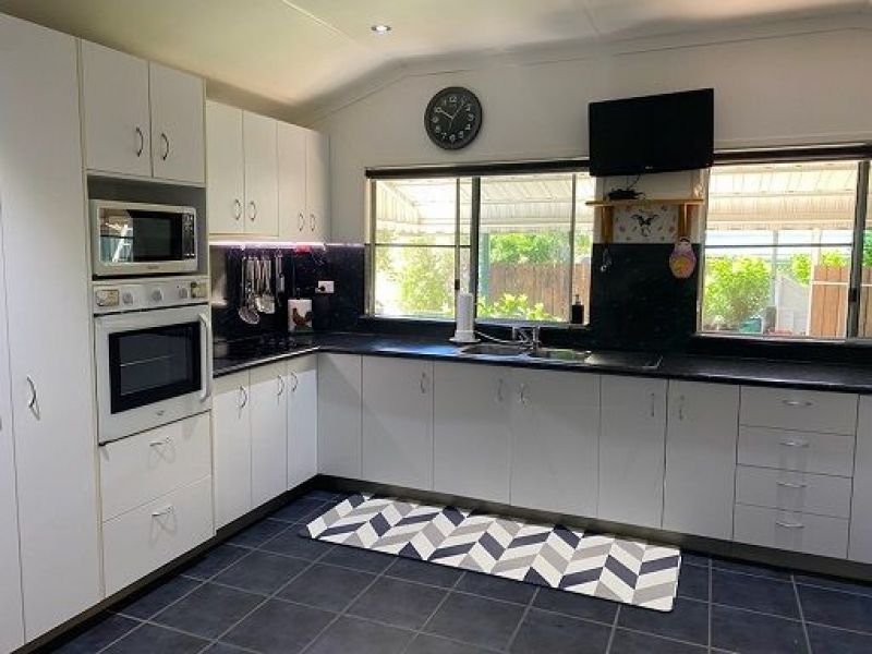 This 4 bedroom house has new kitchen, is fully airconditioned, with new evaporative system, one bedroom doubles as a teenage retreat away from the main living area. Located in a quiet street on the town side of the river, close to the CBD, large 2 bay carport and fully enclosed 2 bay garage, 2 sheds for storage and gardening implements, chicken pen, plus pet friendly fully enclosed well maintained yard, undercover insulated entertaining area at the rear of the house. Perfect house for retired couple wanting to move to town or family looking for a sea change by moving to Rural Qld.