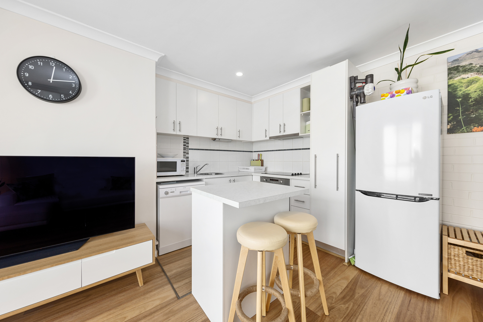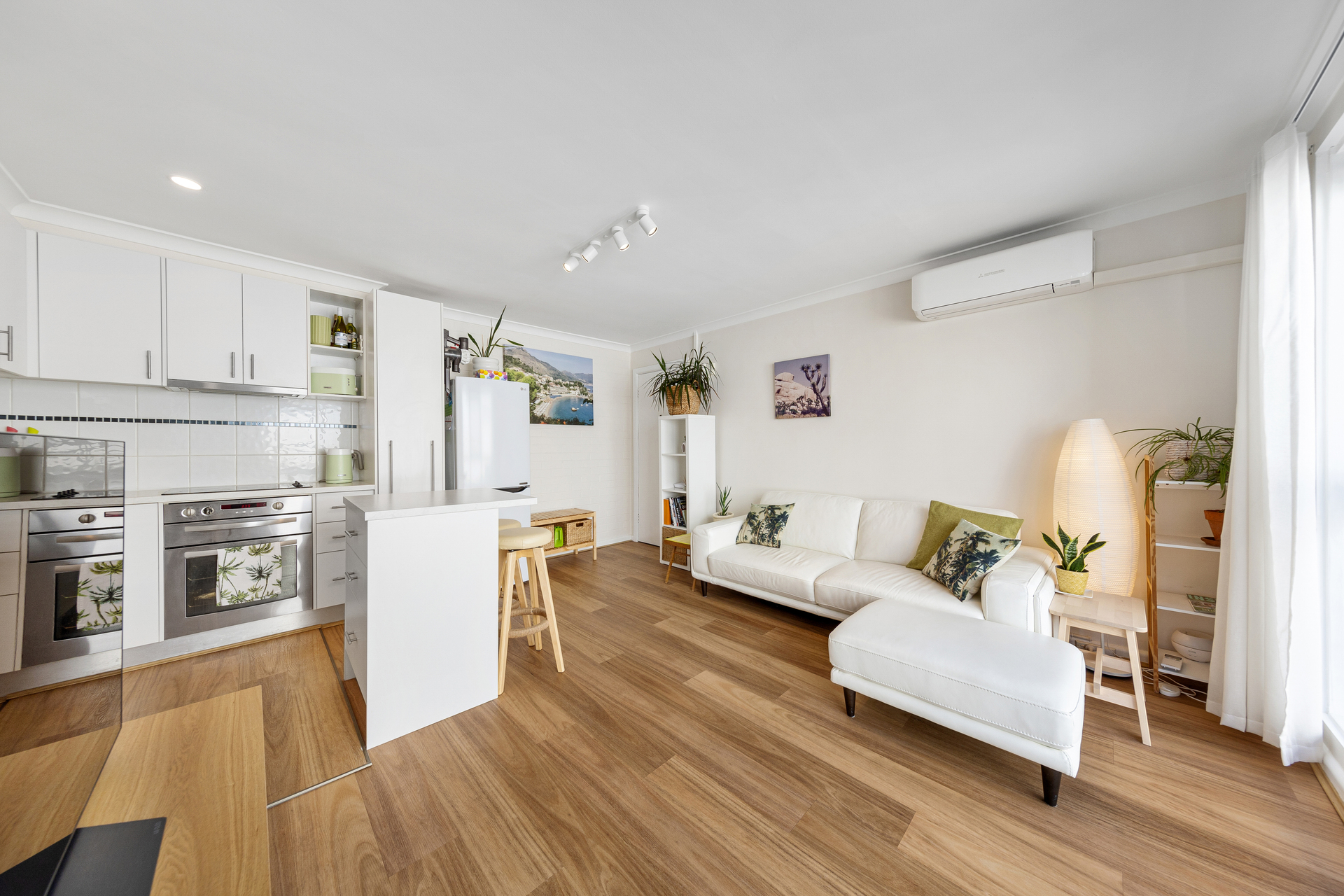Open plan living and kitchen with ample bench space, reverse cycle split system A/C and dishwasher.