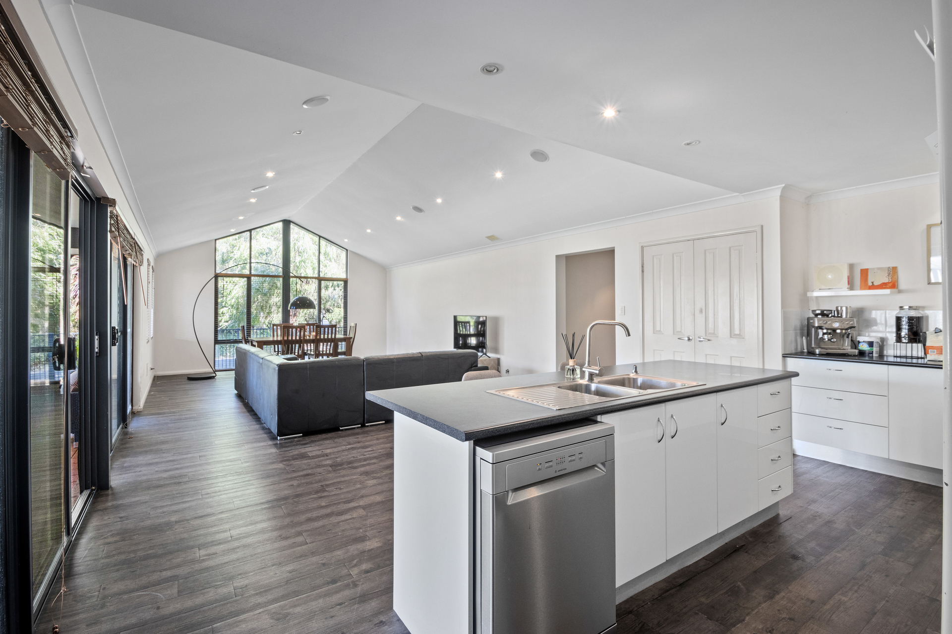 •Open plan kitchen & dining room with high rake lined ceilings overlooking the alfresco entertaining area.