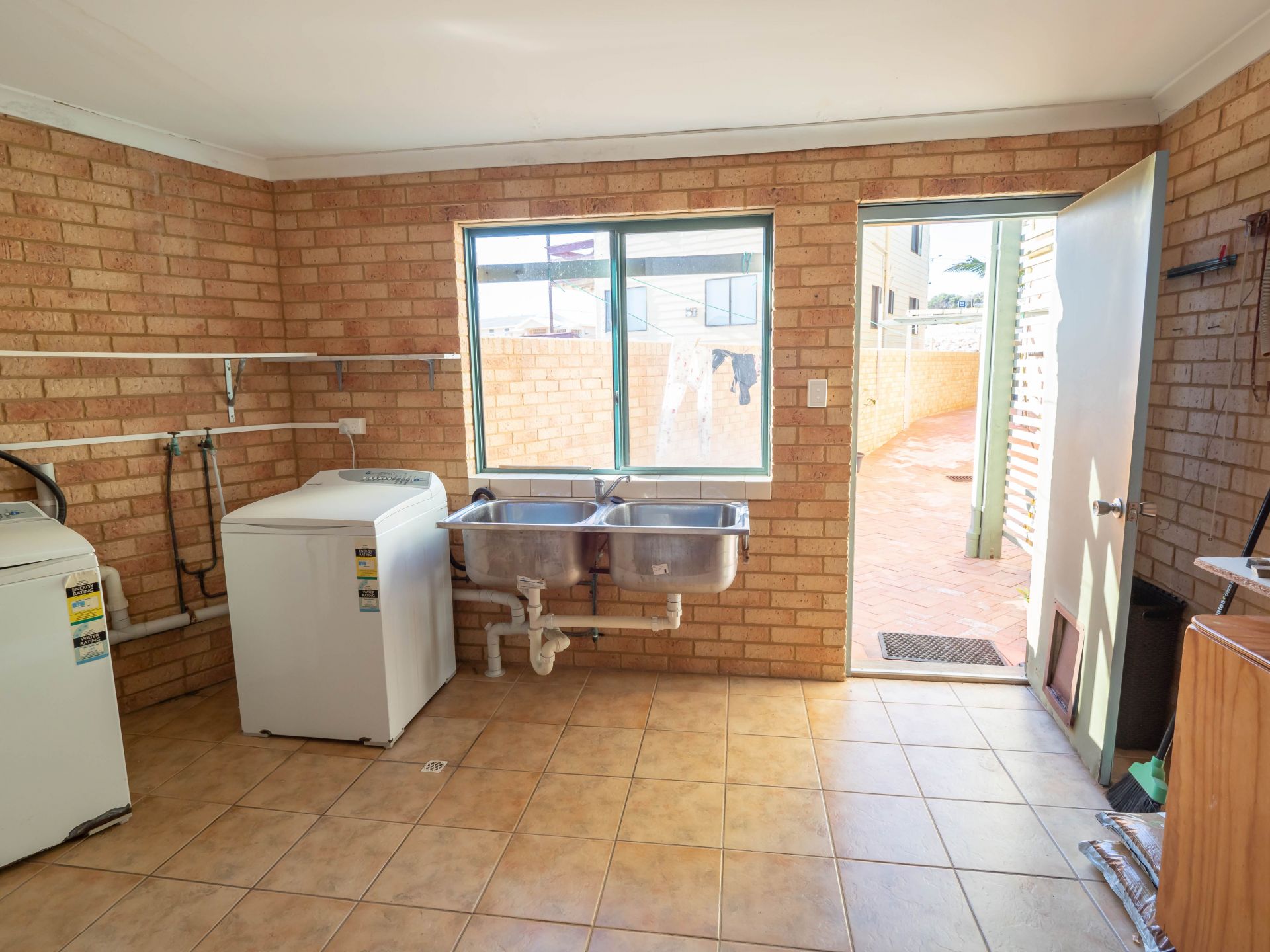 • Commercial size external laundry with tap points for multiple washing machines.