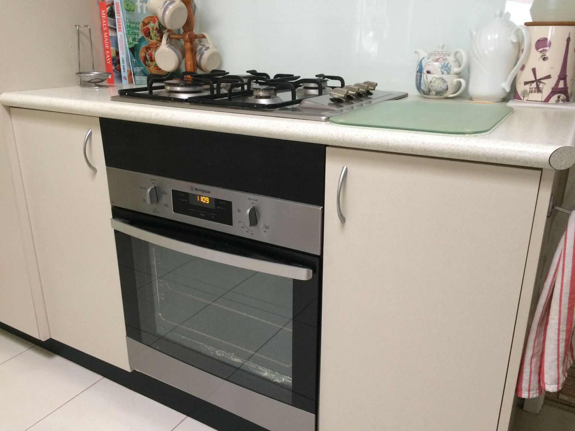 • Bright modern kitchen with abundant cupboards, glass splashbacks, pantry, stainless steel electric oven, just under two years old. Gas cooktop and large breakfast bar.