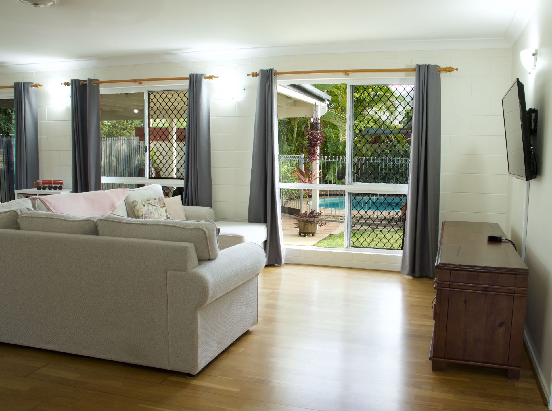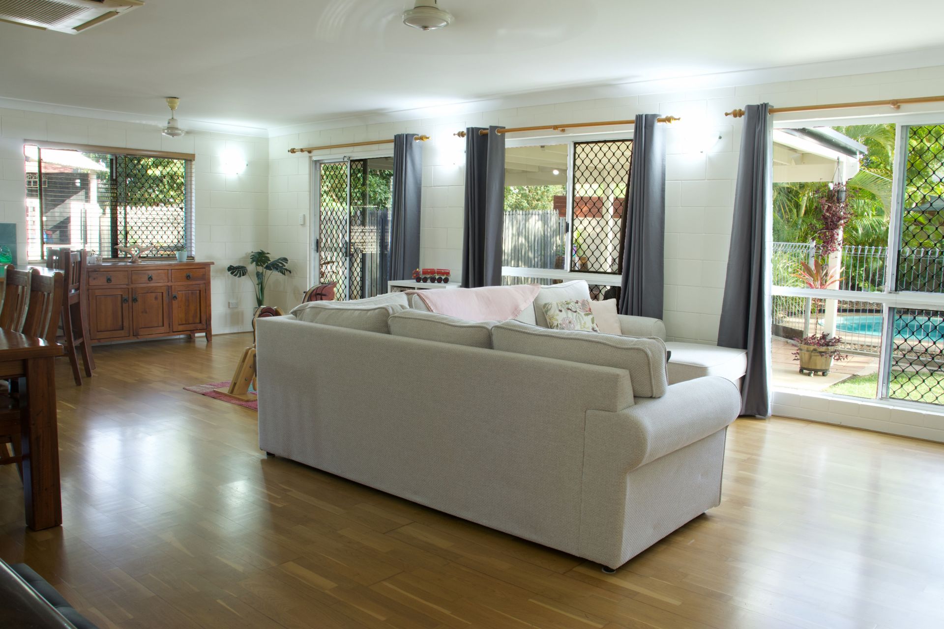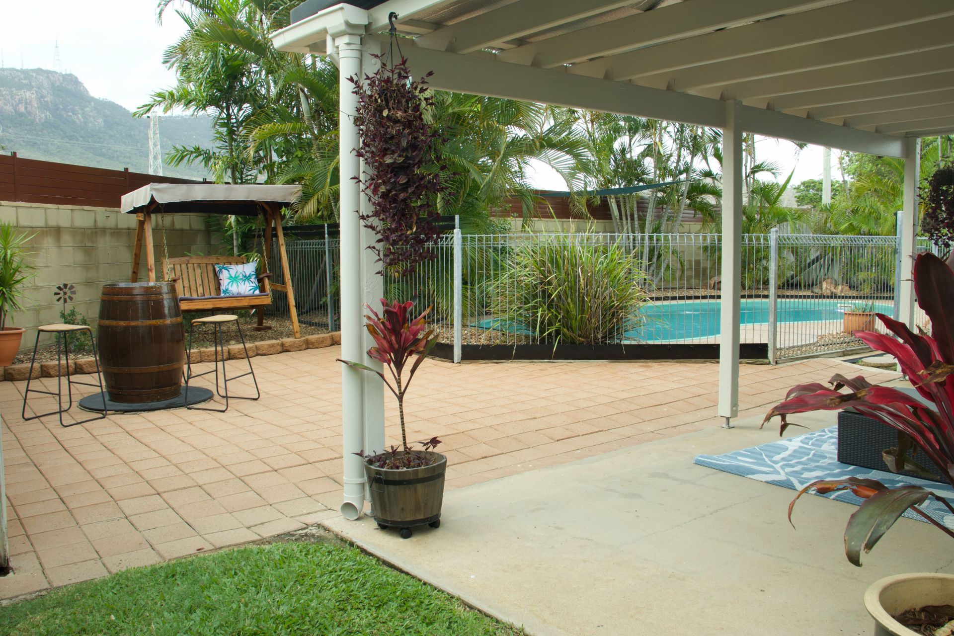 - Covered outdoor entertaining space overlooking the sparkling saltwater pool