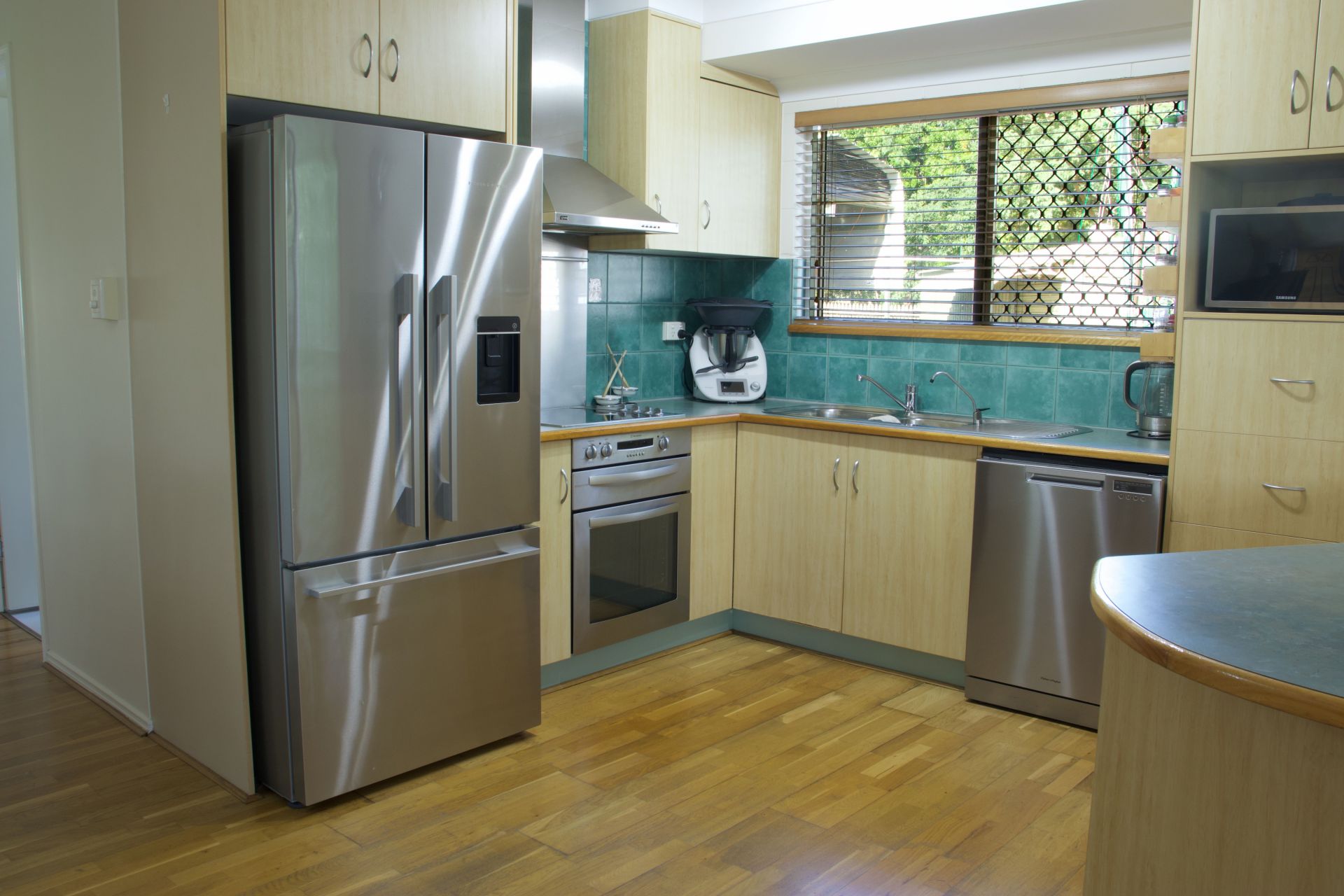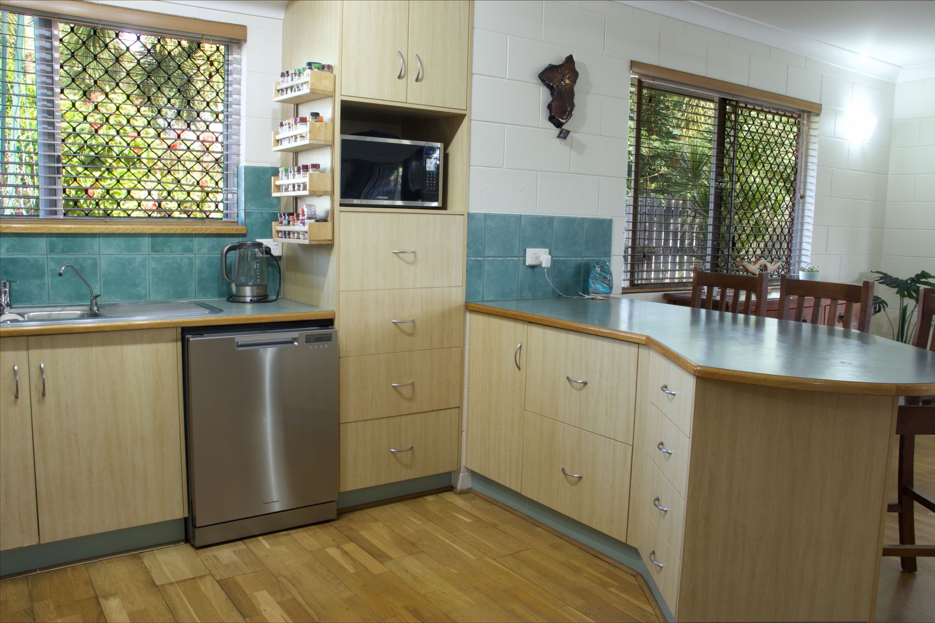 - Plenty of bench space in the kitchen with custom designed pantry drawers for ease of access