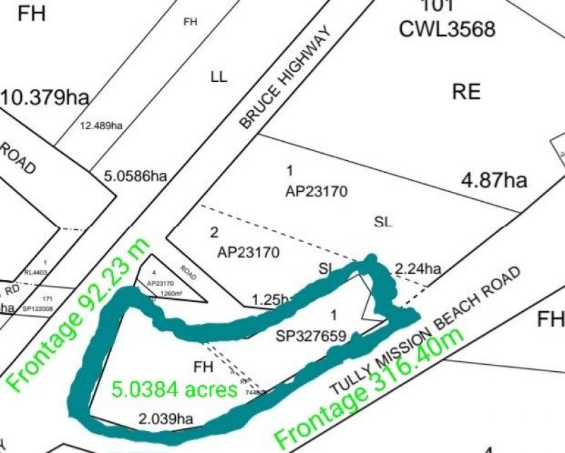 5.0384 acres fronting the main southern access to Mission Beach, This prime property is ready to stamp your presence on its 92m frontage to Bruce Highway.